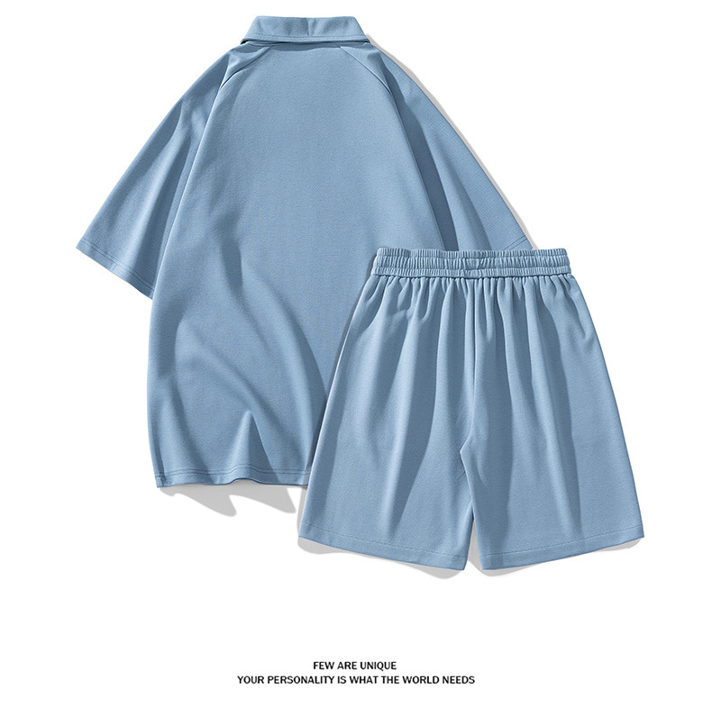 Camiseta polo de manga corta para hombre de verano estilo de puerto relajado juego de dos piezas de deporte casual con un guapo conjunto de ropa