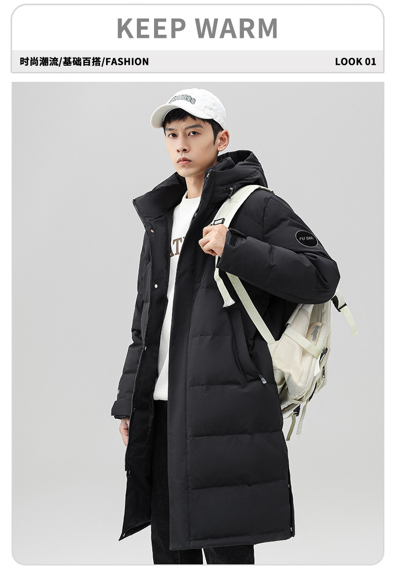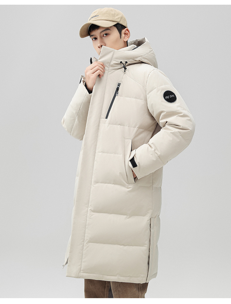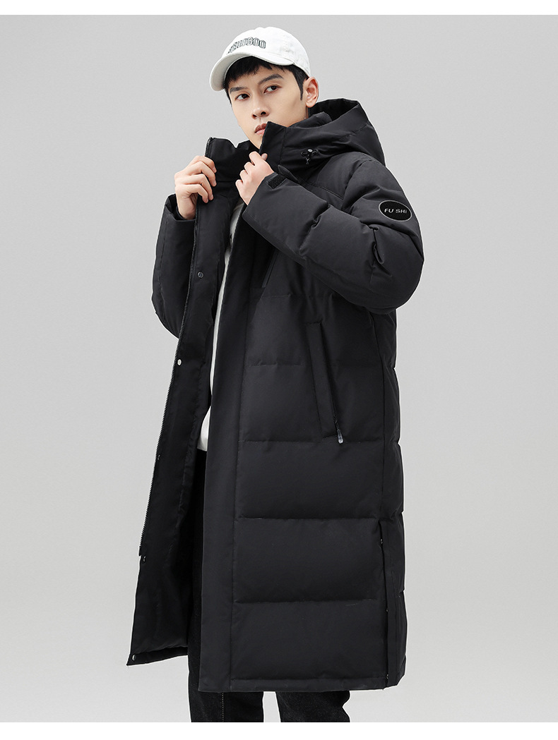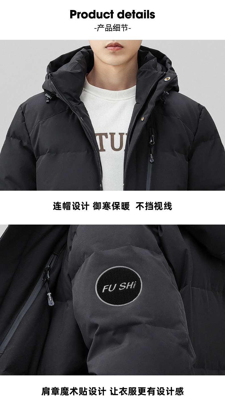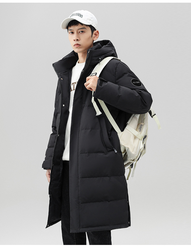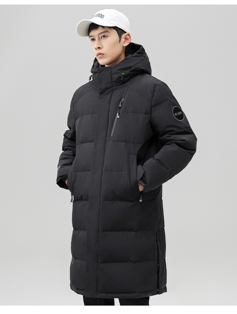 Chaqueta de pluma con capuz para hombres de invierno estilo coreano de moda media y larga ropa de pan gruesa con cremallera de diseño chaqueta cálida