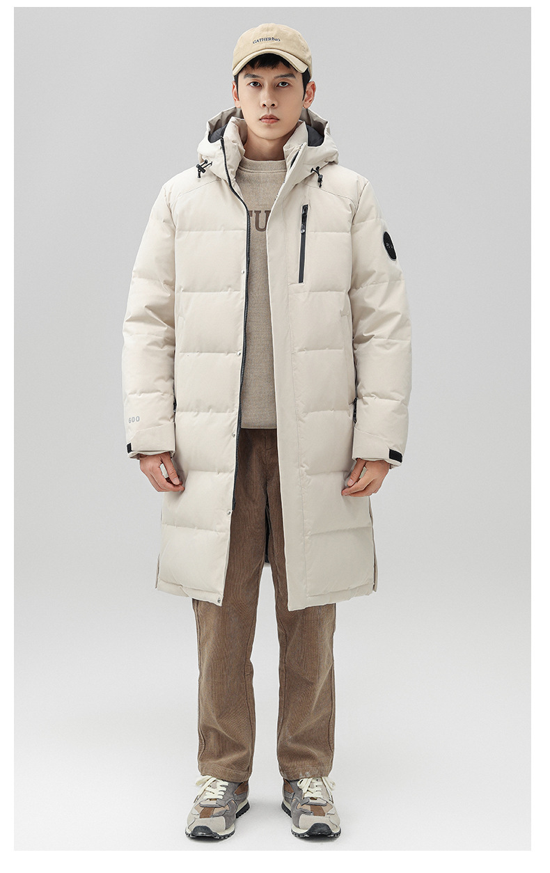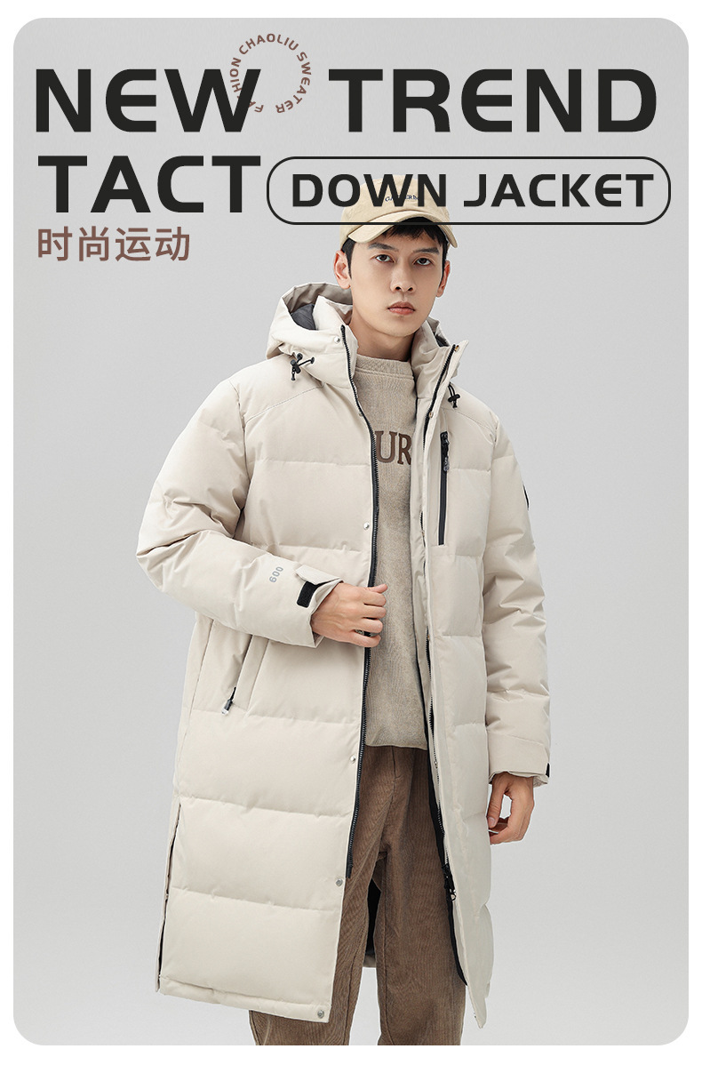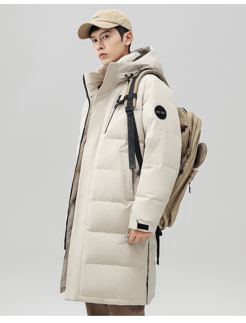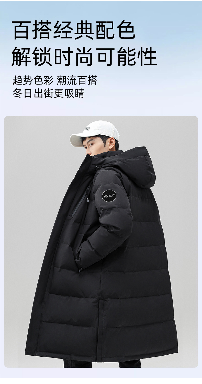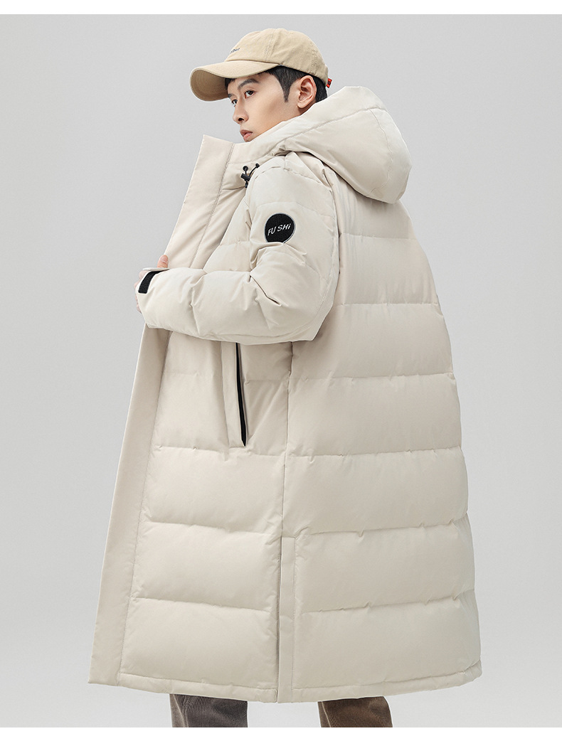 Chaqueta de pluma con capuz para hombres de invierno estilo coreano de moda media y larga ropa de pan gruesa con cremallera de diseño chaqueta cálida