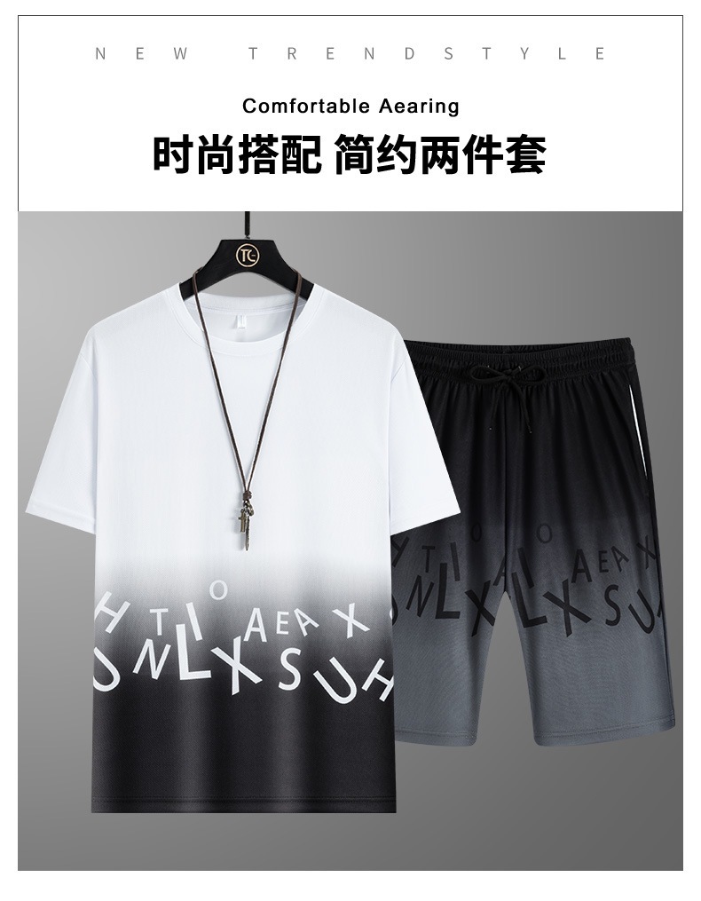 Transfronterizo verano nuevo conjunto de gradiente delgado seda de hielo guapo ropa de manga corta camiseta pantalones cortos deportivos ropa casual para hombres