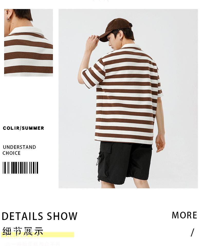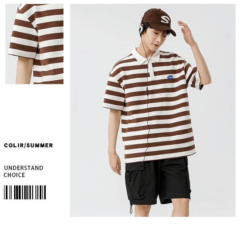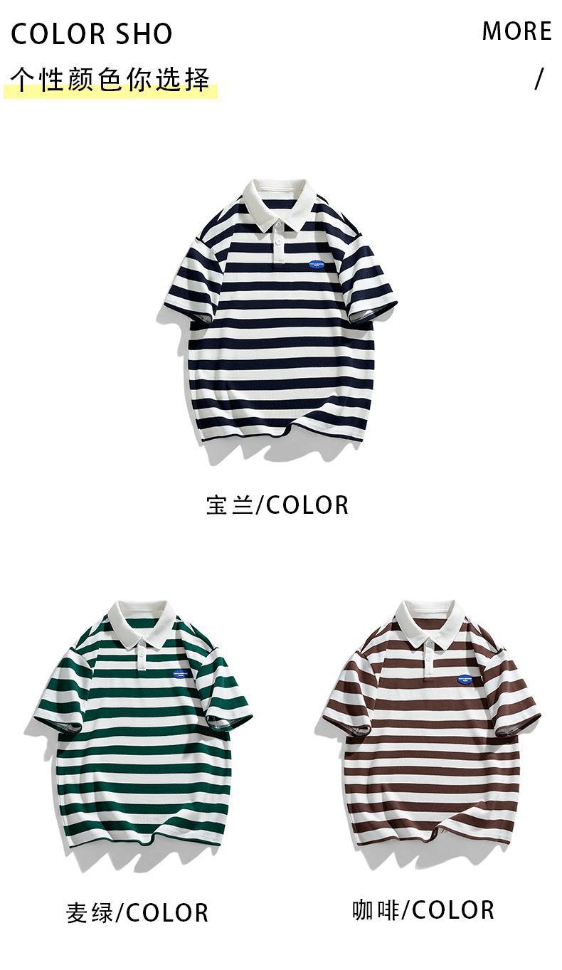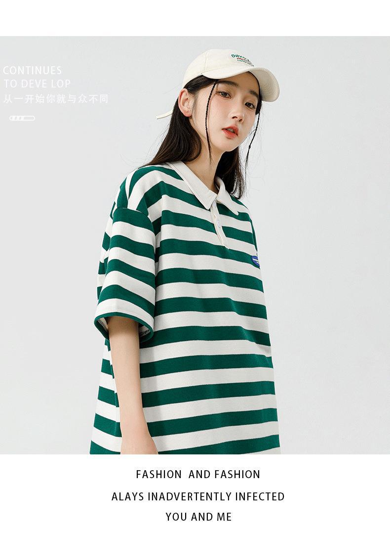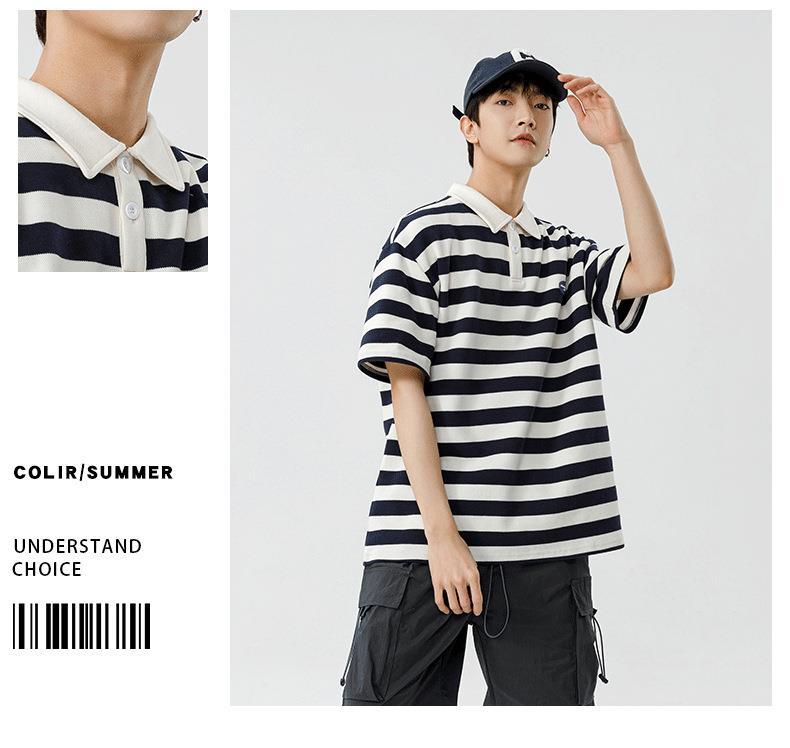 Polo camiseta de manga corta para hombres verano nuevo suelto camiseta de rayas pareja de moda de Hong Kong marca con solapa chaqueta media manga
