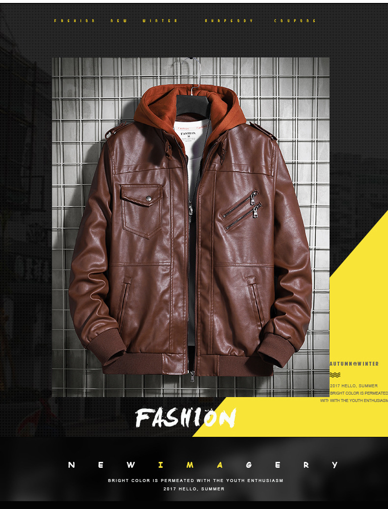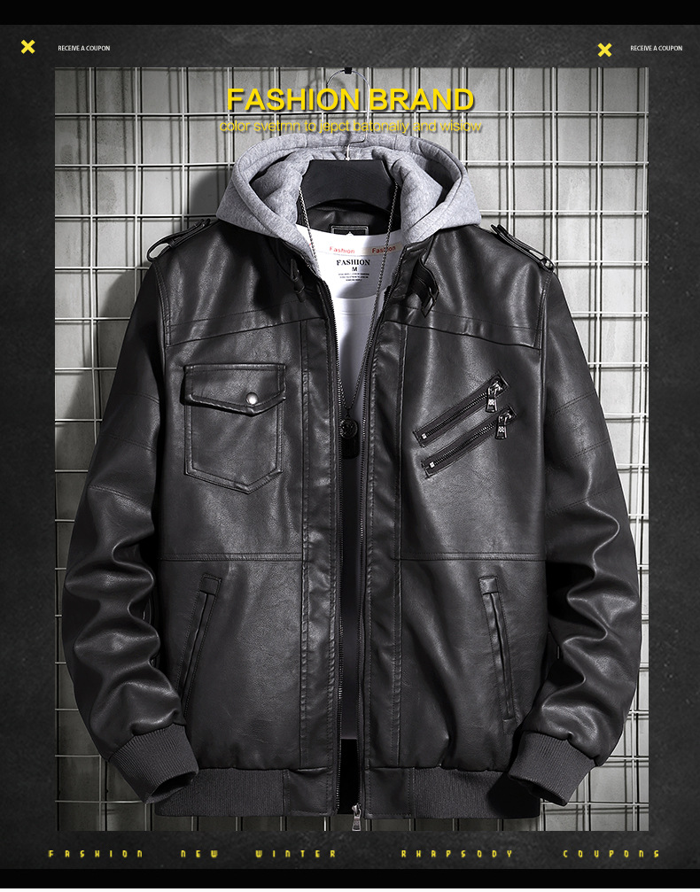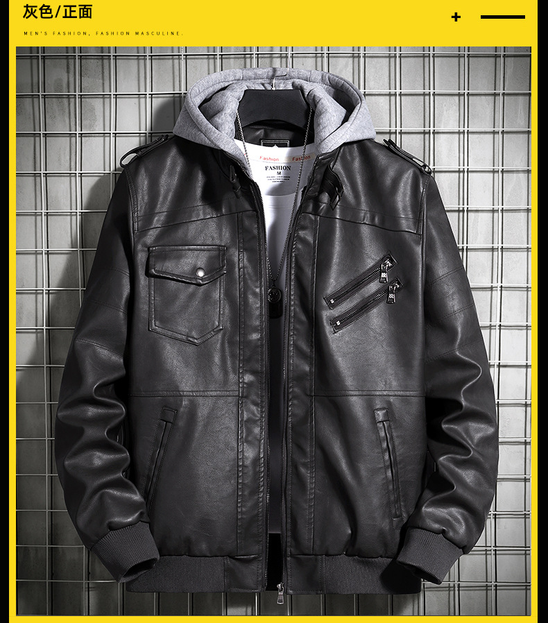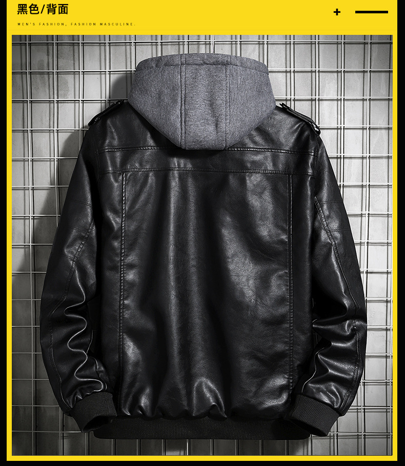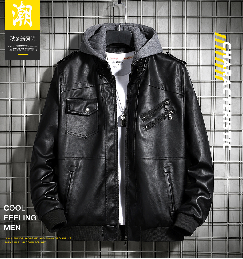 Chaqueta de cuero con capuz para hombres de comercio exterior de otoño ropa de hombre de tamaño grande 2020 tendencia juvenil europea y americana chaqueta de locomotora de hombre