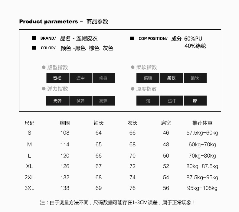 | Categoría del producto | Chaqueta / chaqueta de cuero |