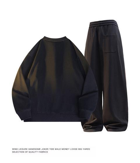 Mayorista 25 años de ropa casual para hombres primavera y otoño nuevo suelto suéter de cuello redondo pantalones recto ropa deportiva dos piezas