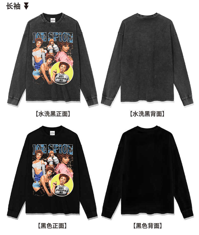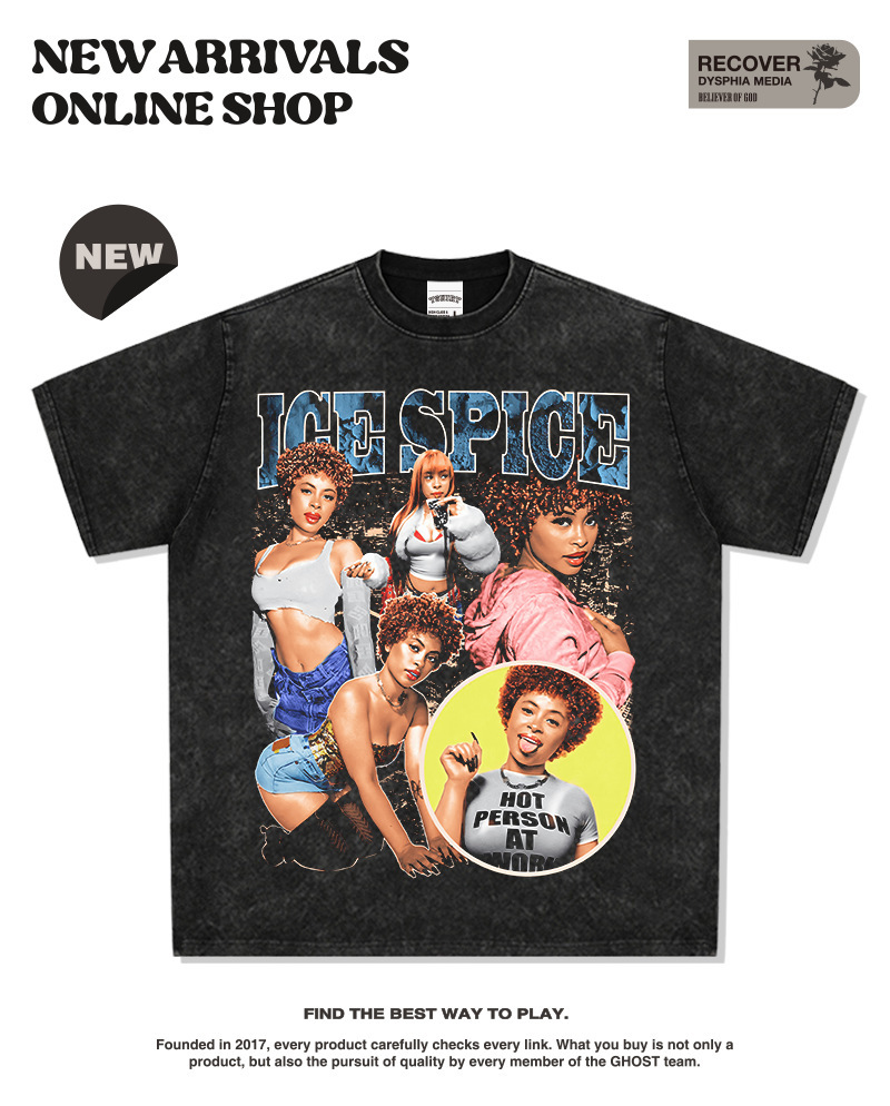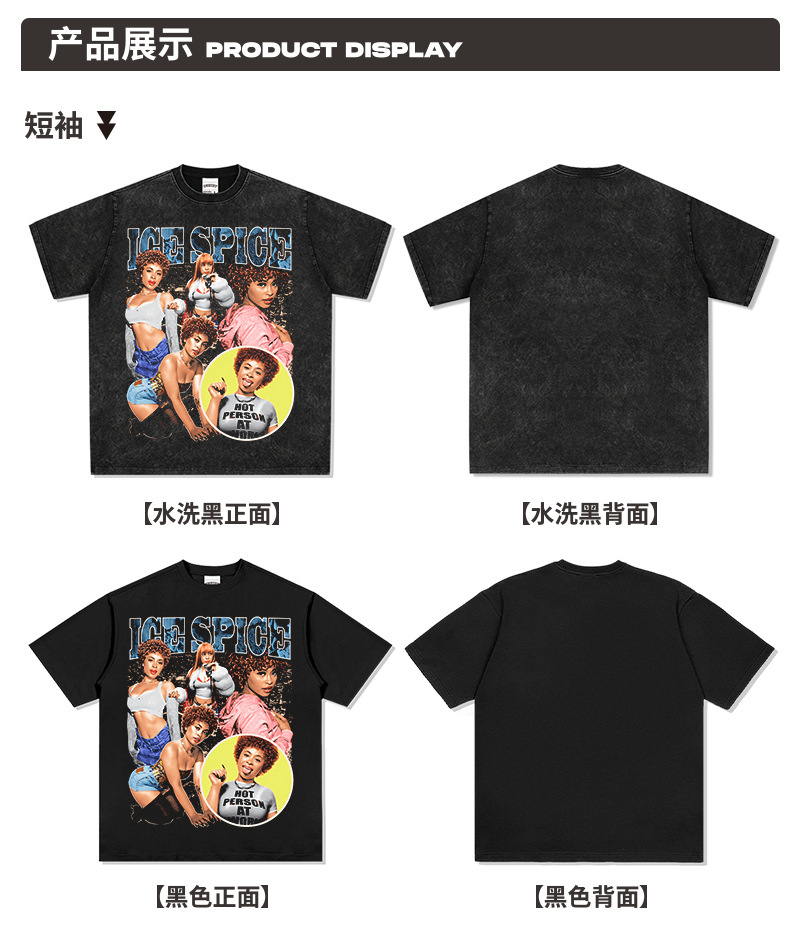 Spicer Hip Hop American Street Tide Impresión Retro Hecha Viejo Lavado Suelto Mangas Corta