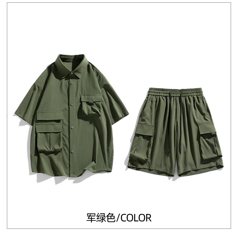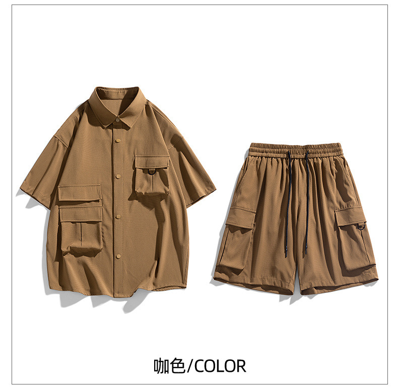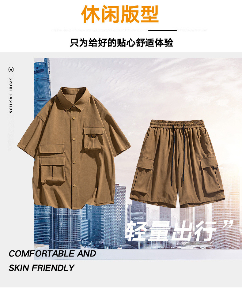 Chantalones casuales de tendencia nacional para hombres de verano de manga corta marca de tendencia universal pantalones cortos deportivos de dos piezas conjunto de pareja al por mayor