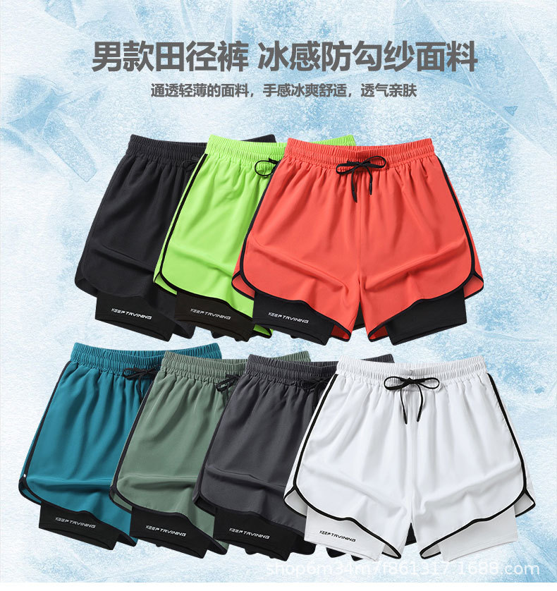 Fábrica de impresión directa pantalones cortos de doble capa para hombres y mujeres secado rápido deportivo relajado de seda de hielo casual pantalones para hombres
