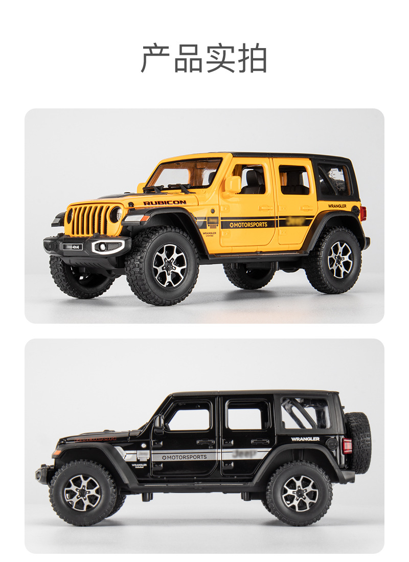 1: 24 Jeep Wrangler aleación de automóvil imitación verdadera puerta abierta retorno sonoro y luz juguetes para niños decoración de vehículo todoterreno