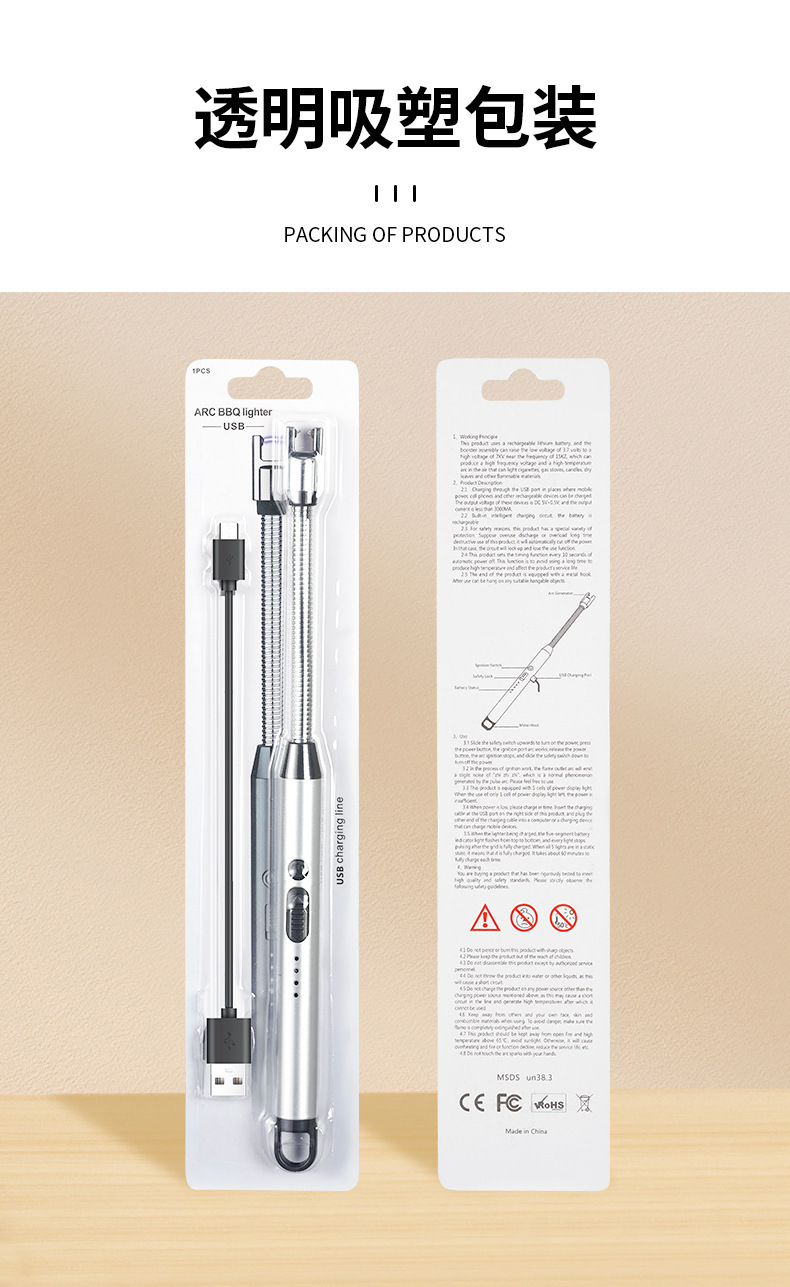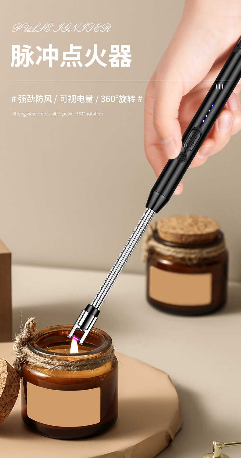 JL825 Encendedor de estufa de gas largo vela encendedor de carga de pulso encendedor electrónico encendedor