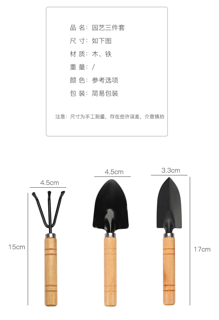 Herramientas de plantación de flores hogar plantación de vegetales jardinería Pino suelo flor pala maceta herramientas de plantación floral pala pequeña de tres piezas