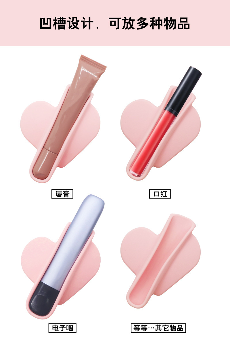 Estuche de silicona para lápiz labial con diseño de amor transfronterizo, soporte para lápiz labial con pegamento 3M, estuche para teléfono móvil, soporte portátil para brillo labial, venta al por mayor.