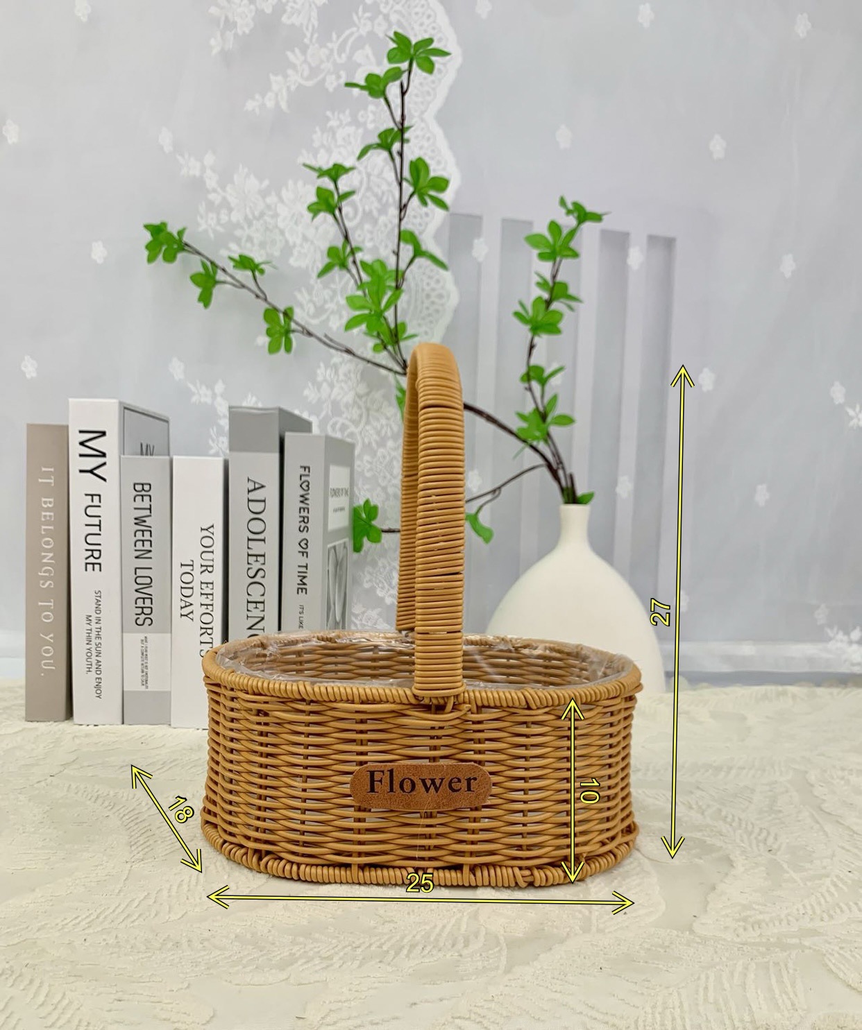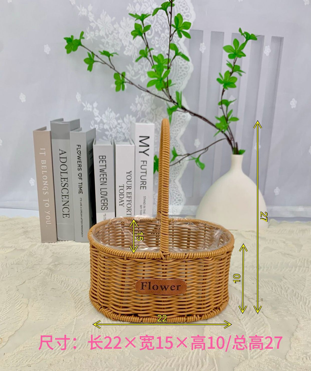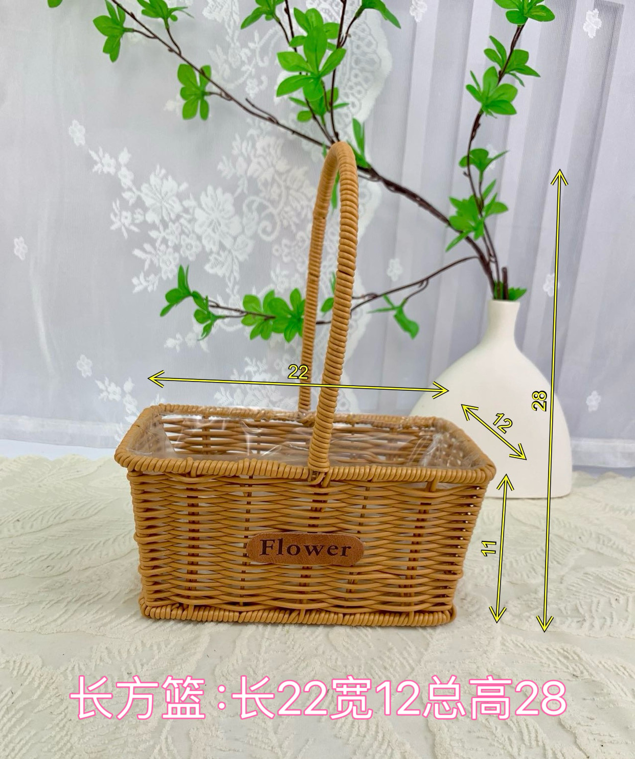 Arreglos florales portátiles de imitación de ratán, cestas de flores tejidas a mano, adornos de sala de estar, cestas de jardín, regalos a mano, cestas de flores