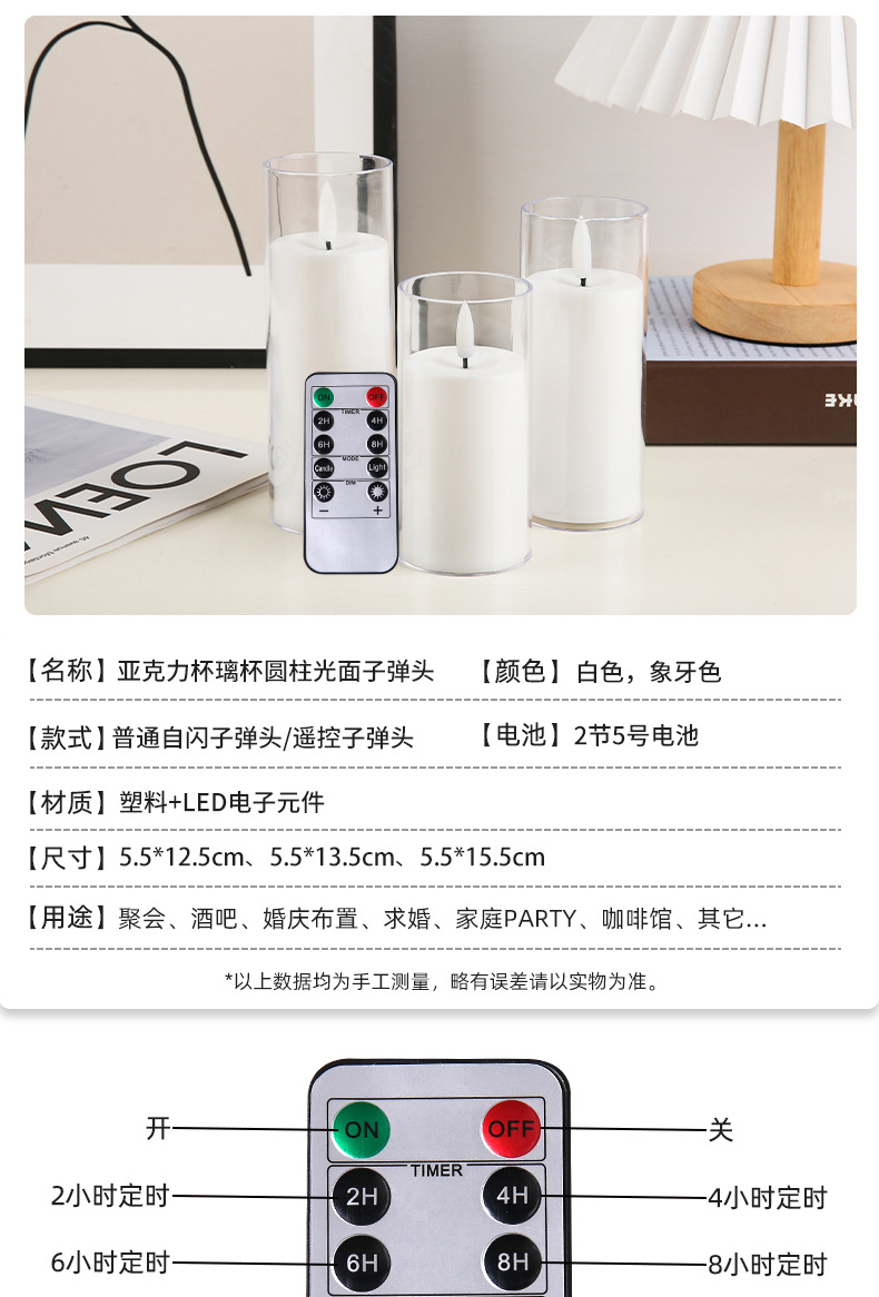 LED vela electrónica acrílico taza de vidrio vela luz fiesta boda decoración vela electrónica