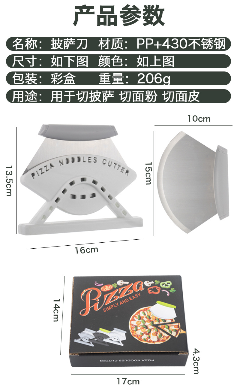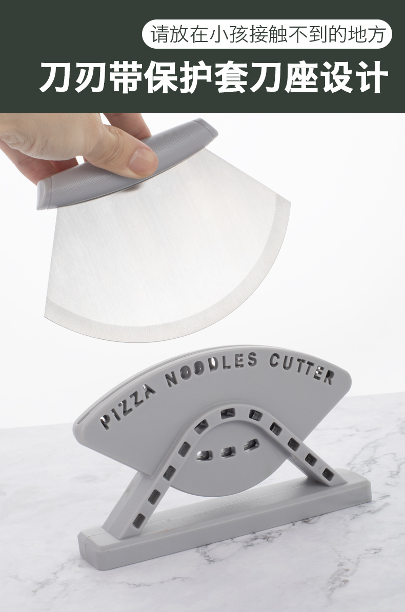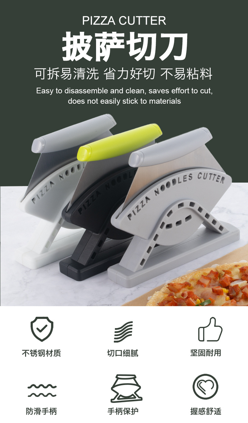 Cuchillo de pizza vertical de acero inoxidable transfronterizo con base Pizza cutter herramienta de horneado de cocina de hoja curva