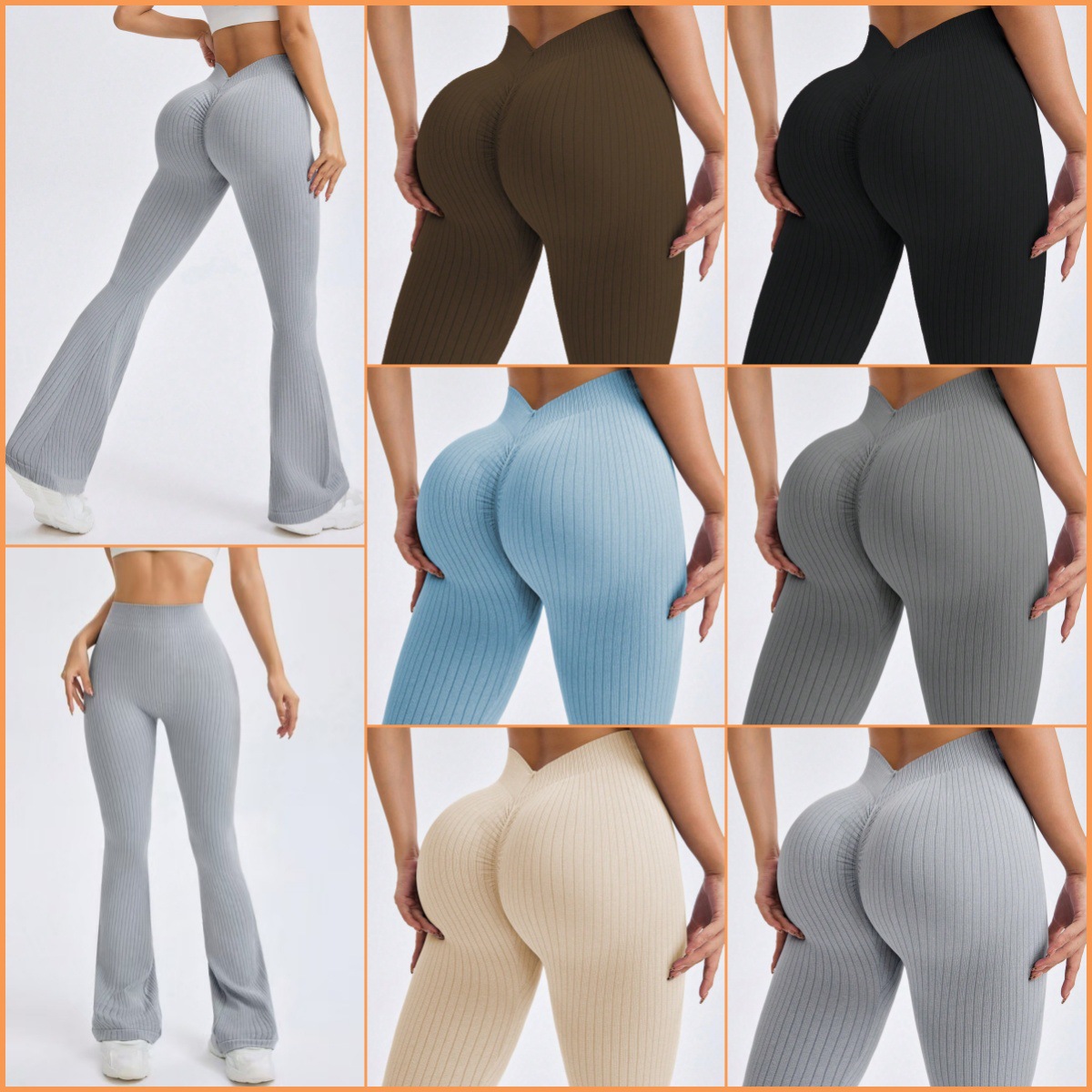 6 colores sin costura V cintura roscada pantalones pantalones deportivos leggings