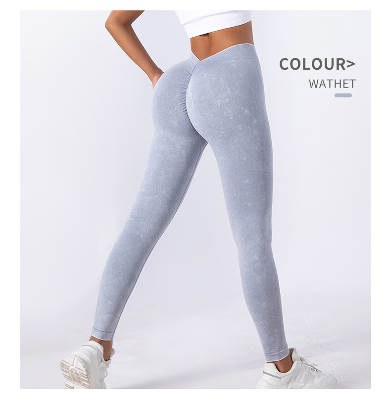 Nuevos pantalones de yoga TIKTOK lavado sin costuras en V cintura alta elástico ejercicio yoga fitness pantalones ajustados pantalones de yoga
