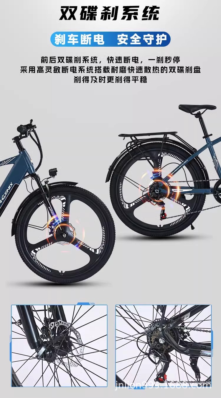 El mismo modelo transfronterizo de Yadea, especialmente para puntos de venta autoconstruidos en el extranjero, material de acero con alto contenido de carbono de 26 pulgadas, batería de litio para ayudar a la bicicleta de montaña
