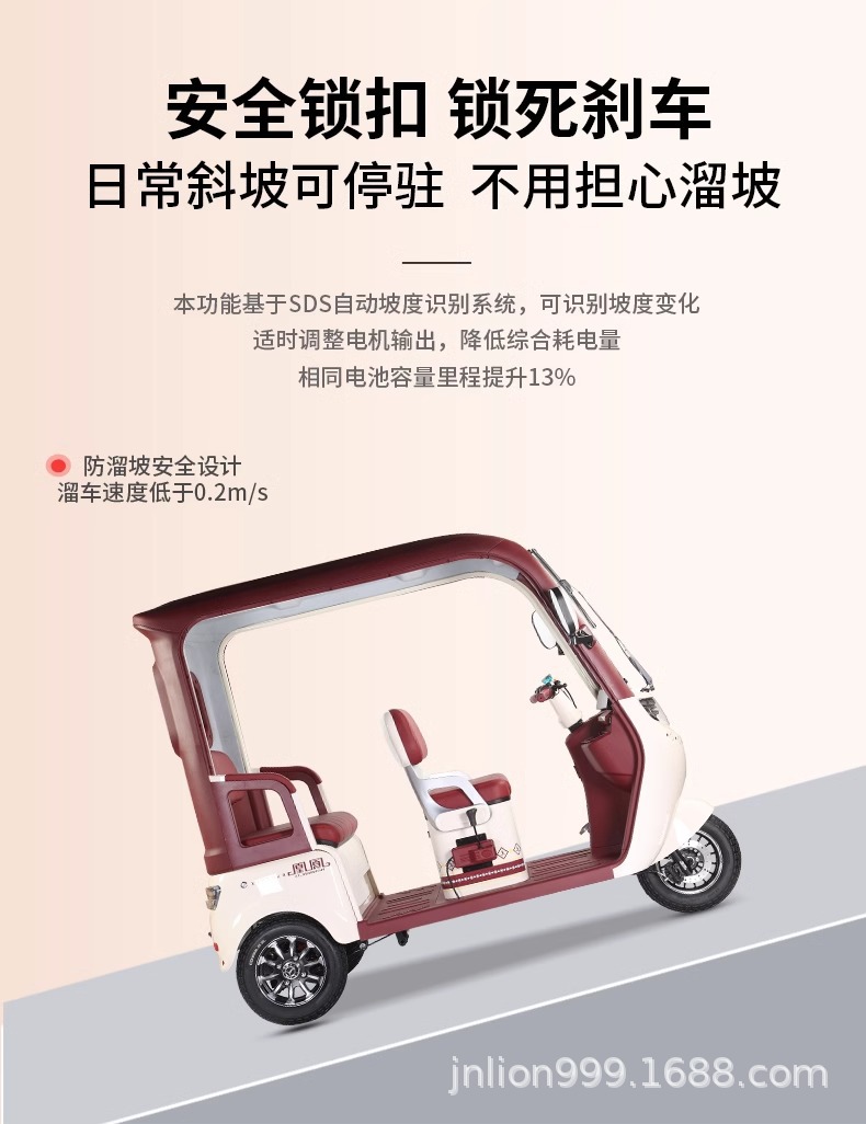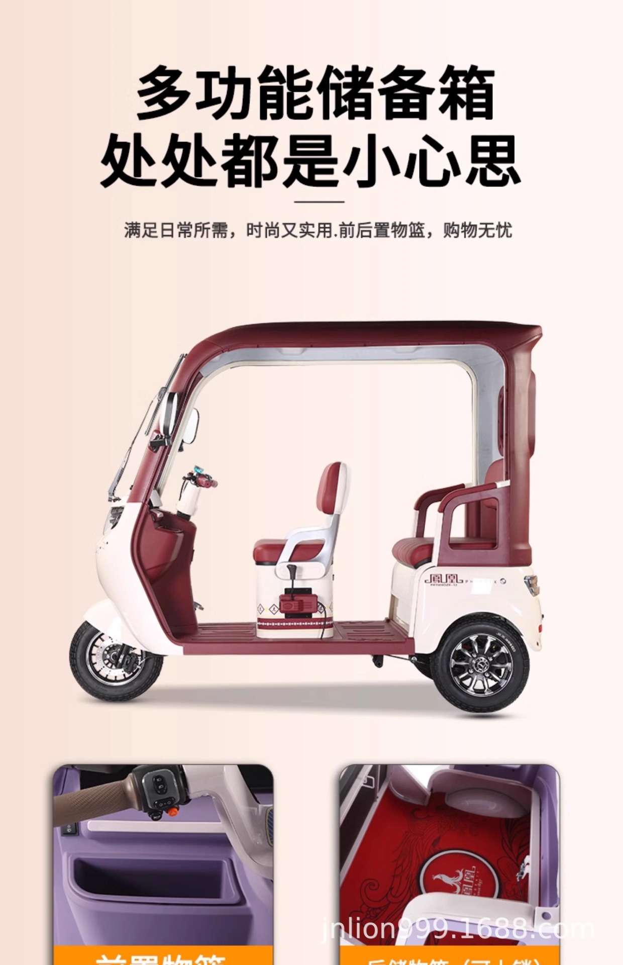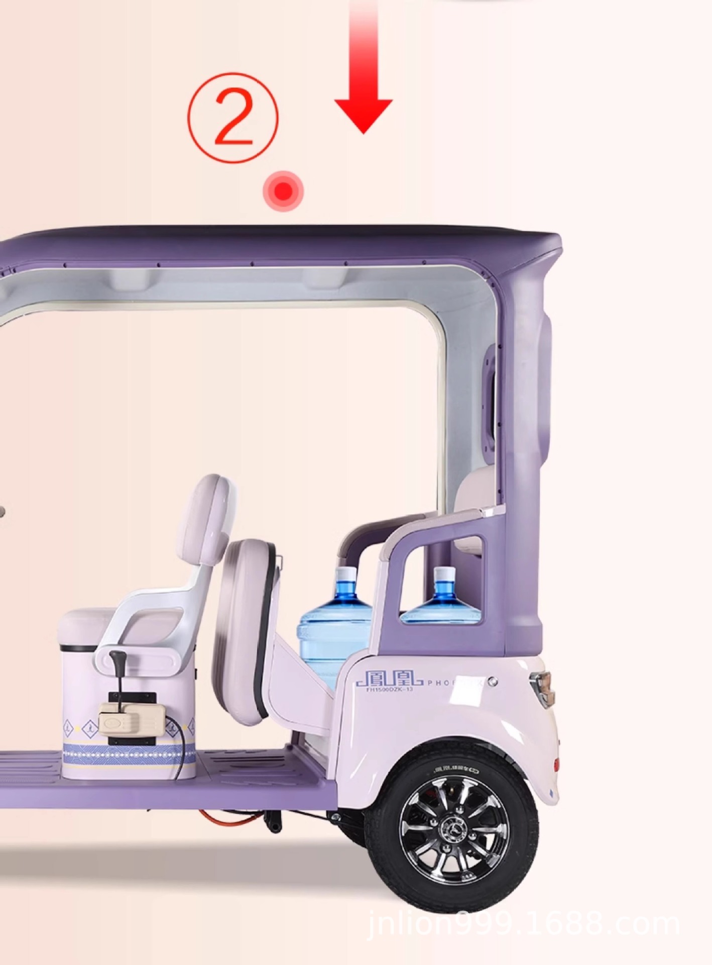 Triciclo eléctrico doméstico de pequeña dama para recoger niños scooter con carro de batería de cabina