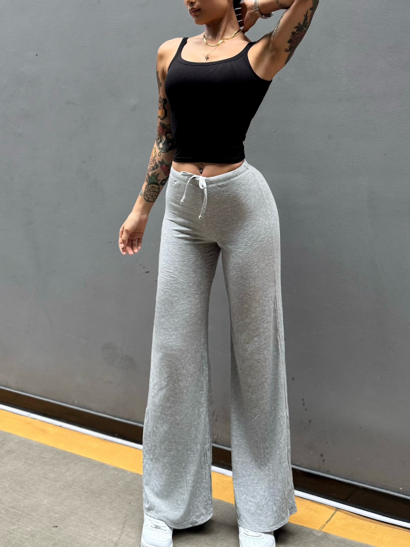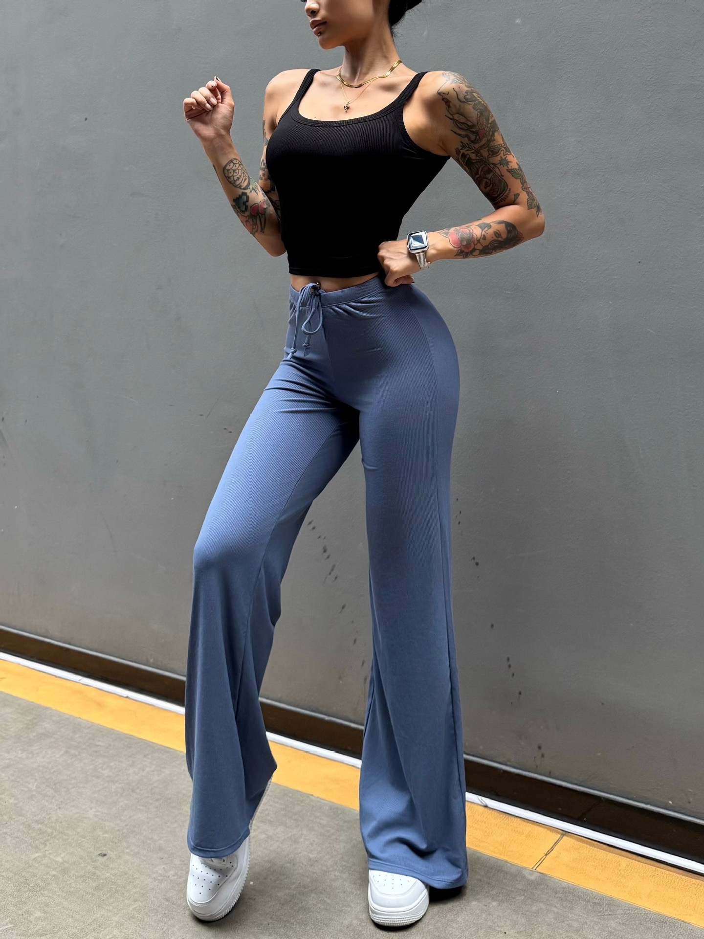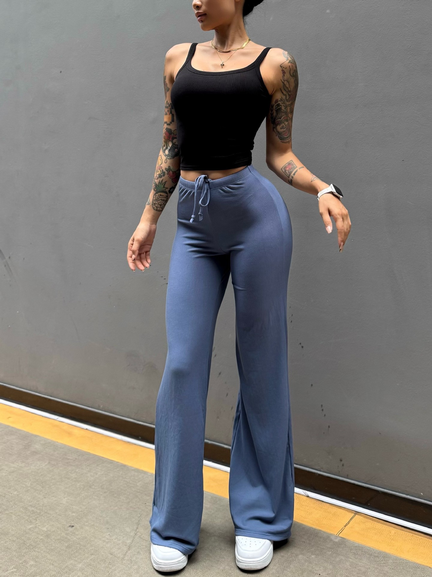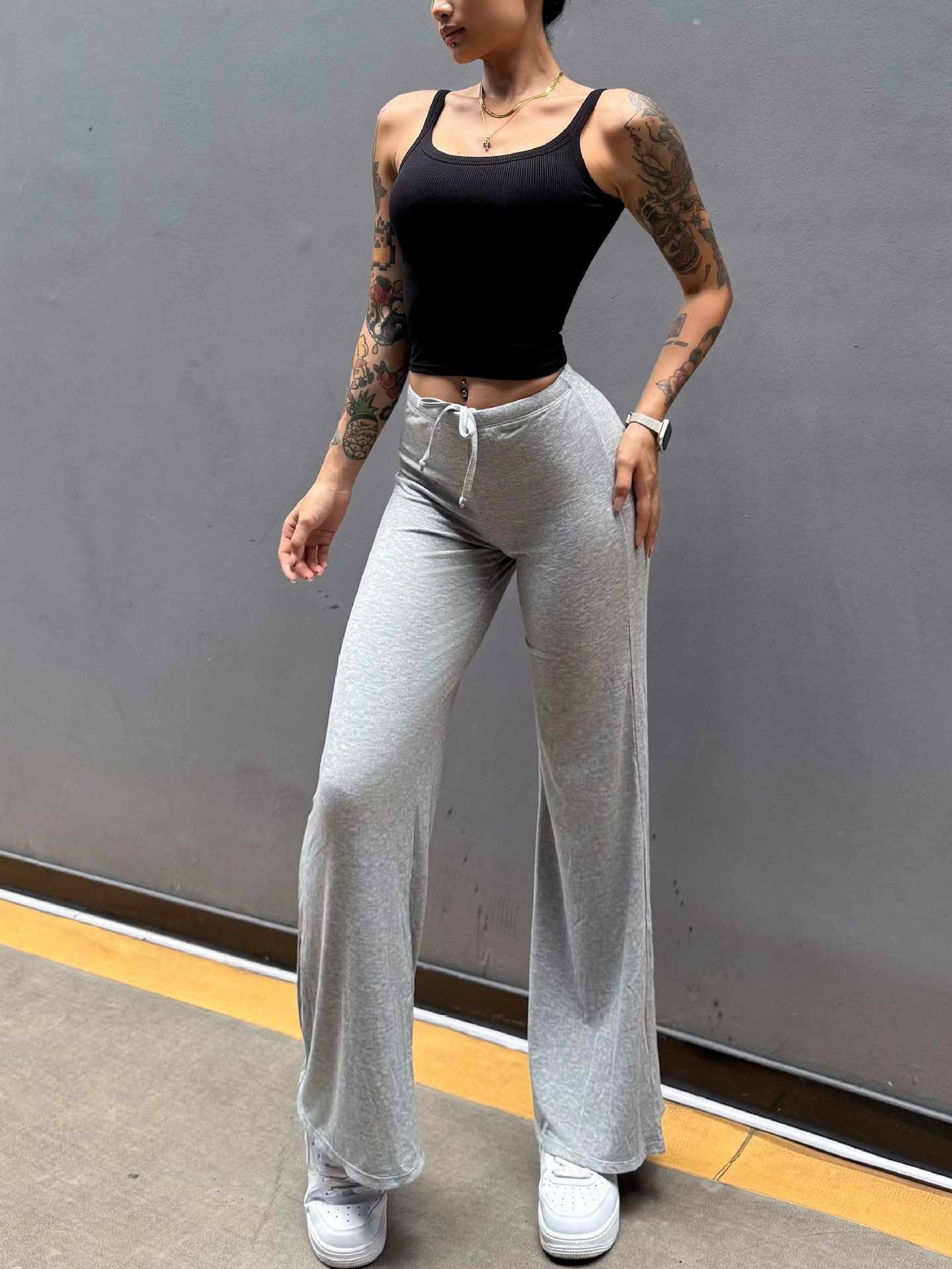 Pantalón perezoso que muestra la elasticidad de la cadera, enorme y cómodo drapeado, cintura pequeña pura, yoga recto, fitness, pantalones deportivos de ocio, mujeres