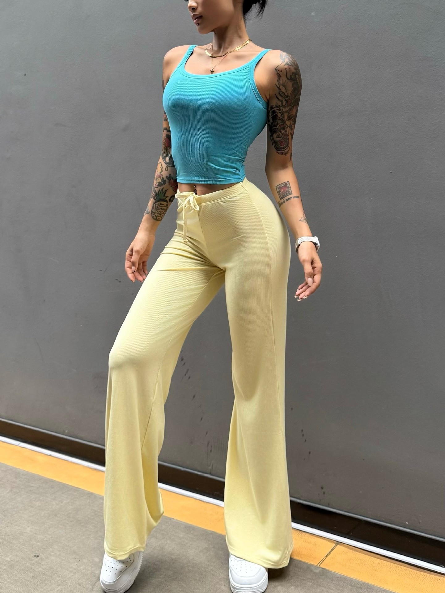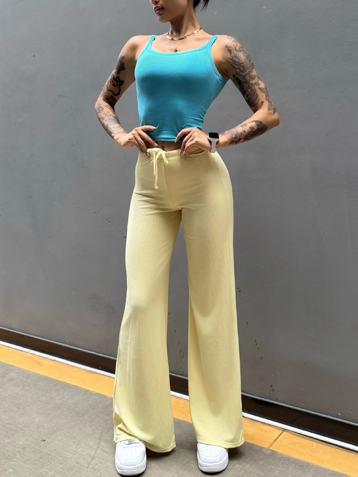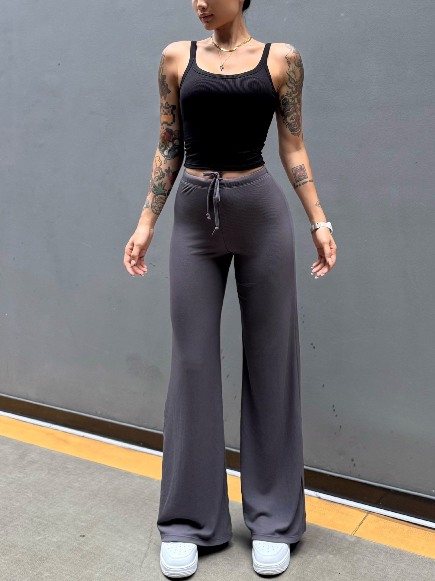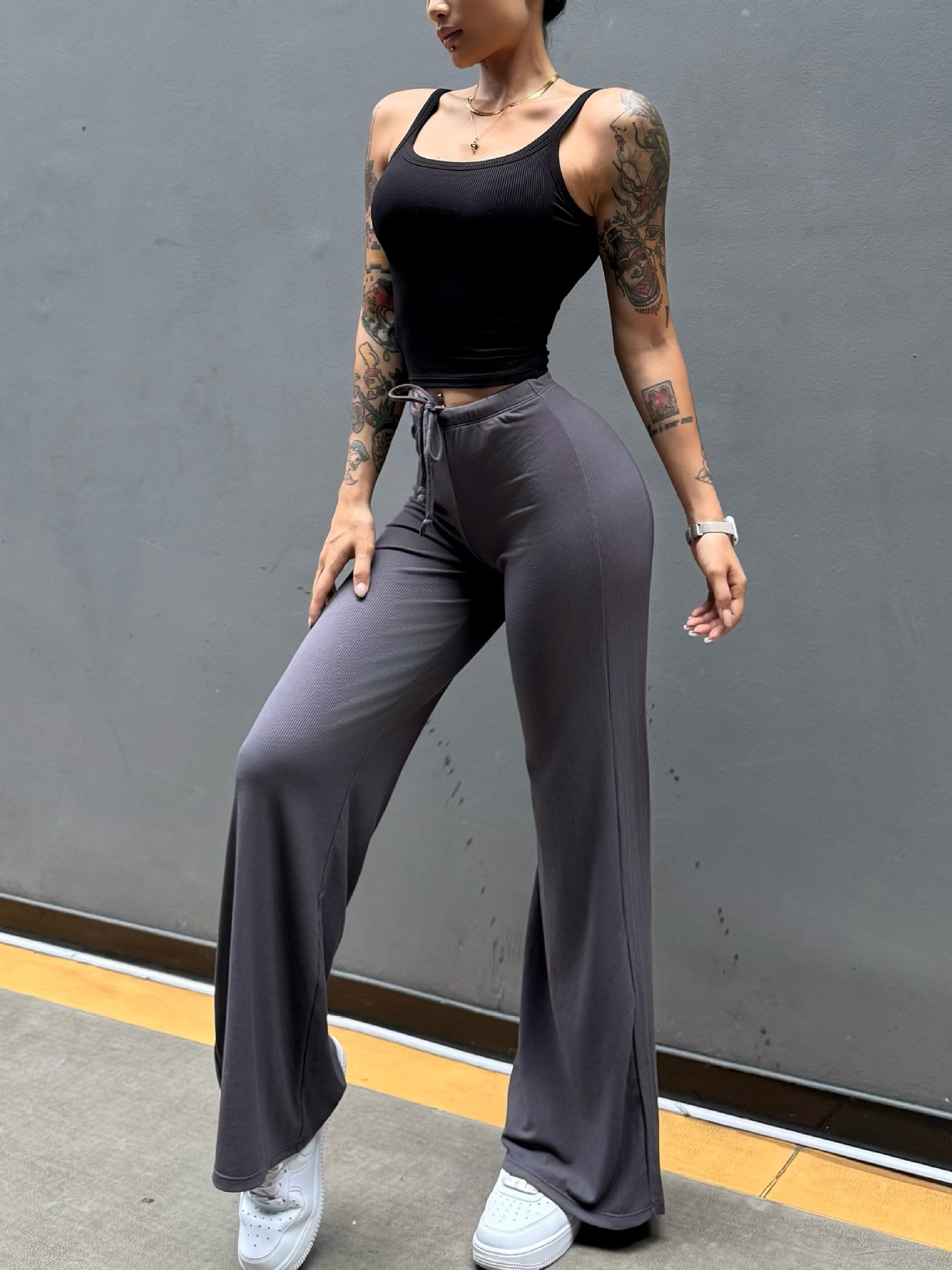 Pantalón perezoso que muestra la elasticidad de la cadera, enorme y cómodo drapeado, cintura pequeña pura, yoga recto, fitness, pantalones deportivos de ocio, mujeres