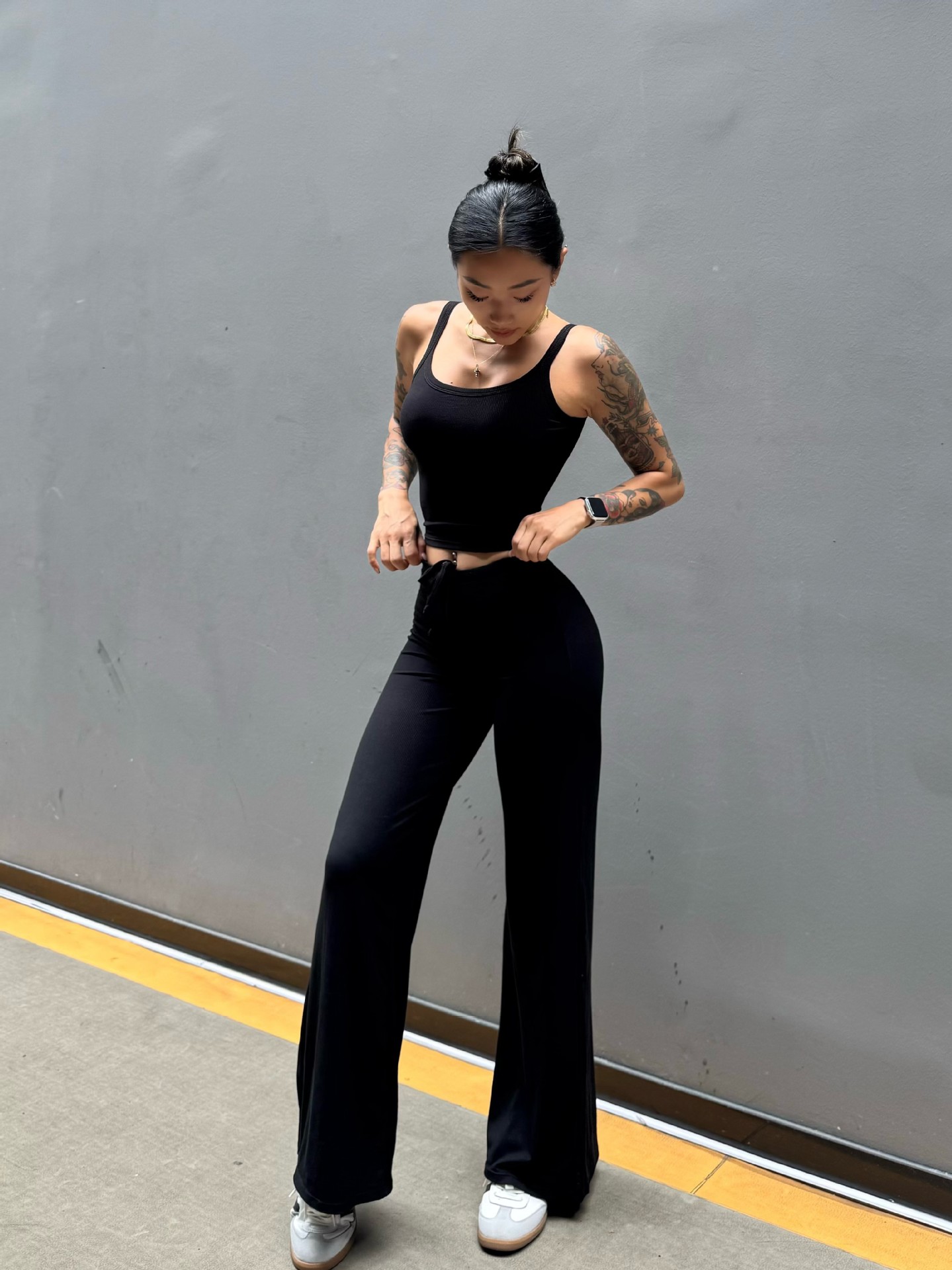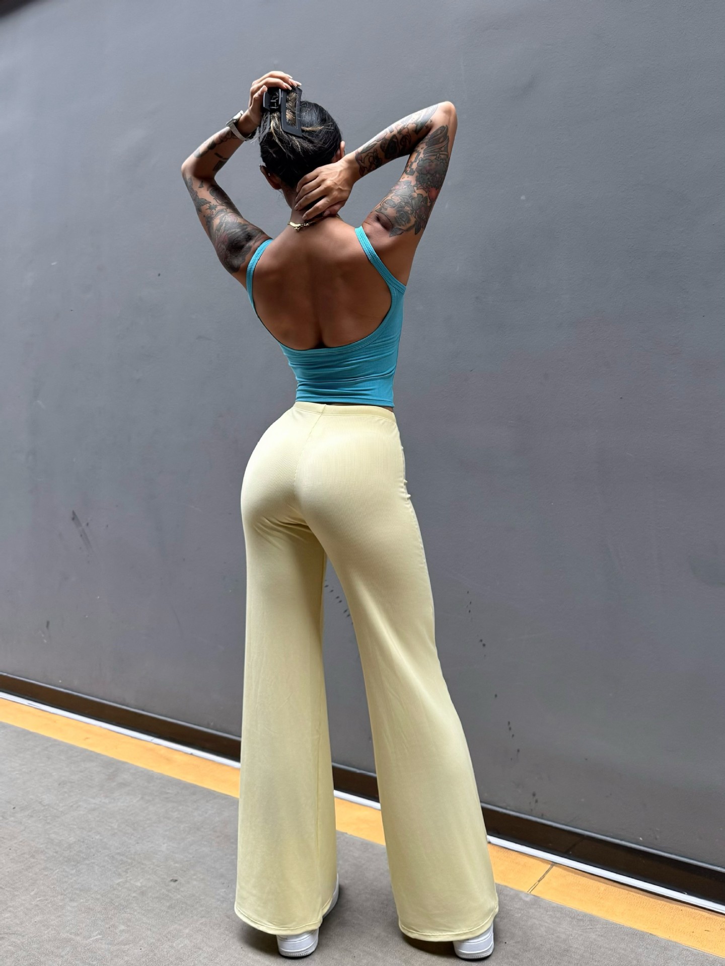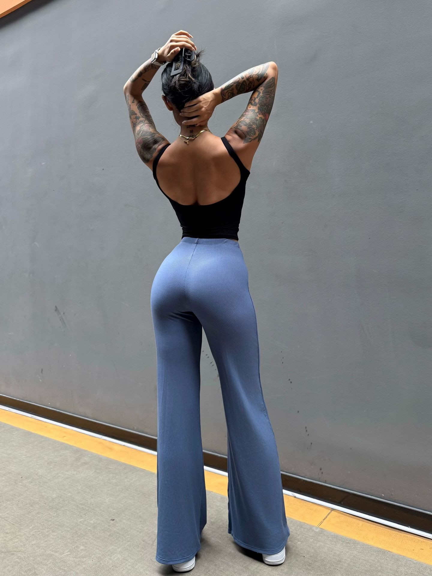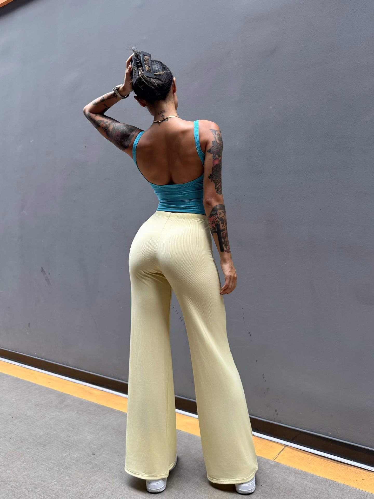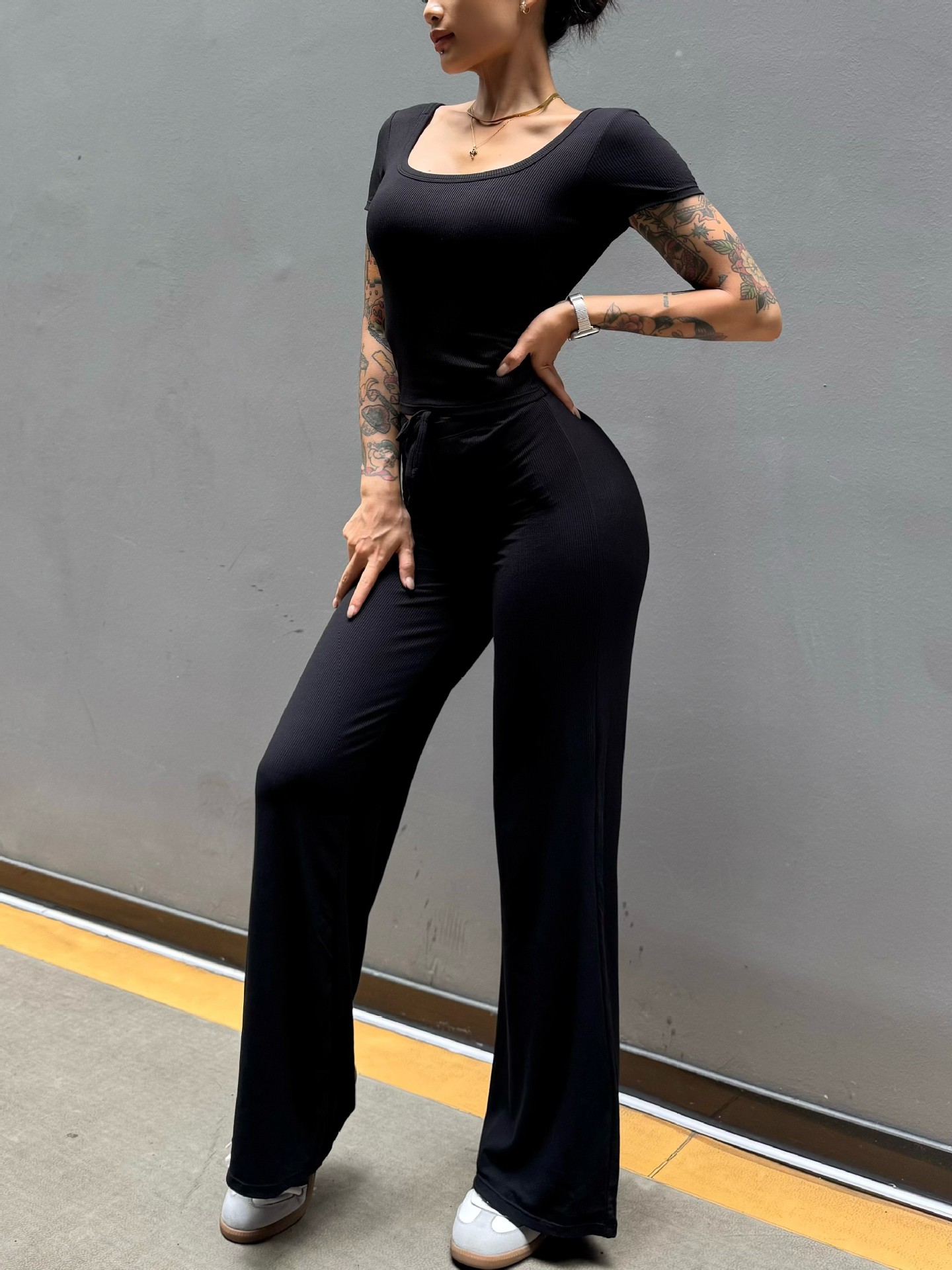 Pantalón perezoso que muestra la elasticidad de la cadera, enorme y cómodo drapeado, cintura pequeña pura, yoga recto, fitness, pantalones deportivos de ocio, mujeres