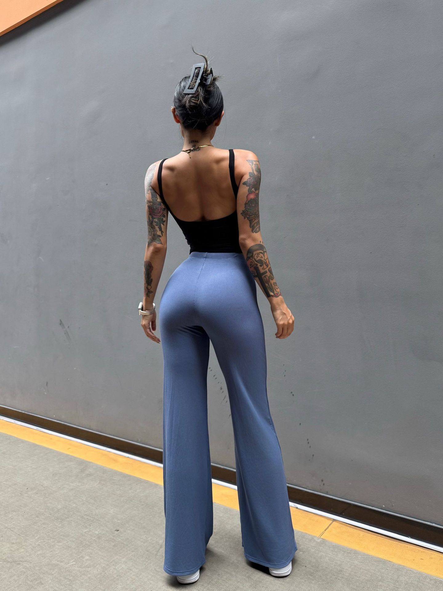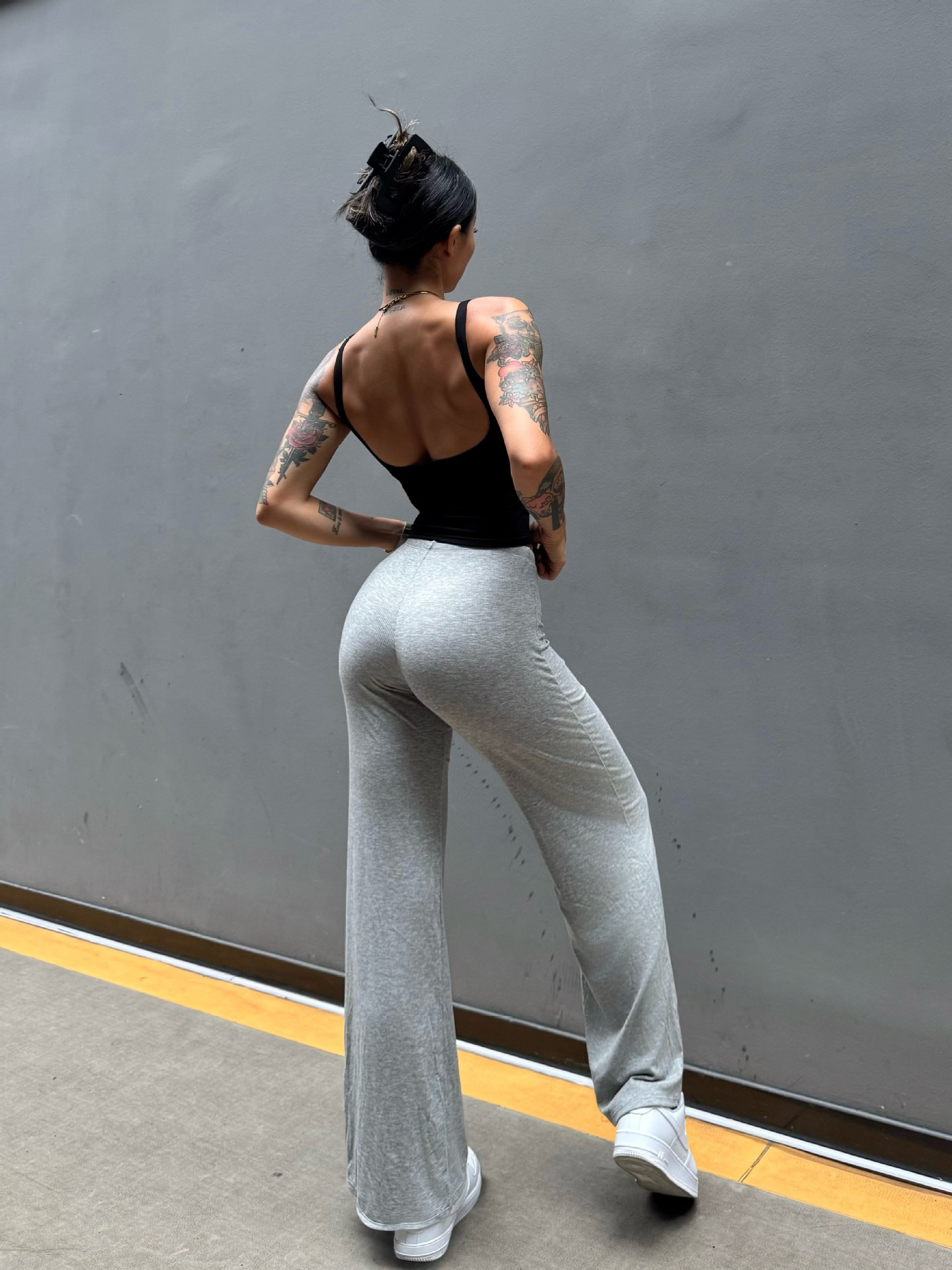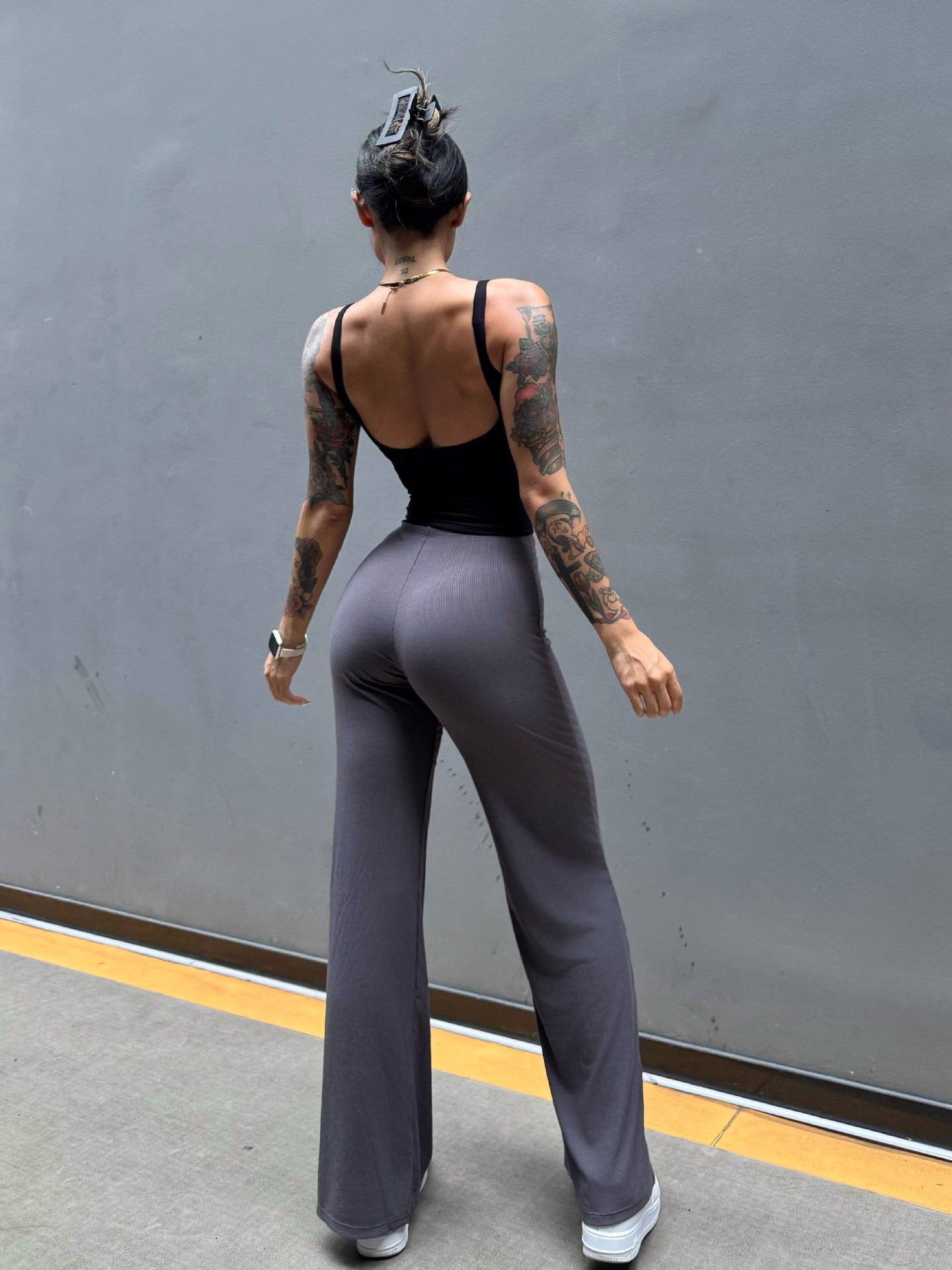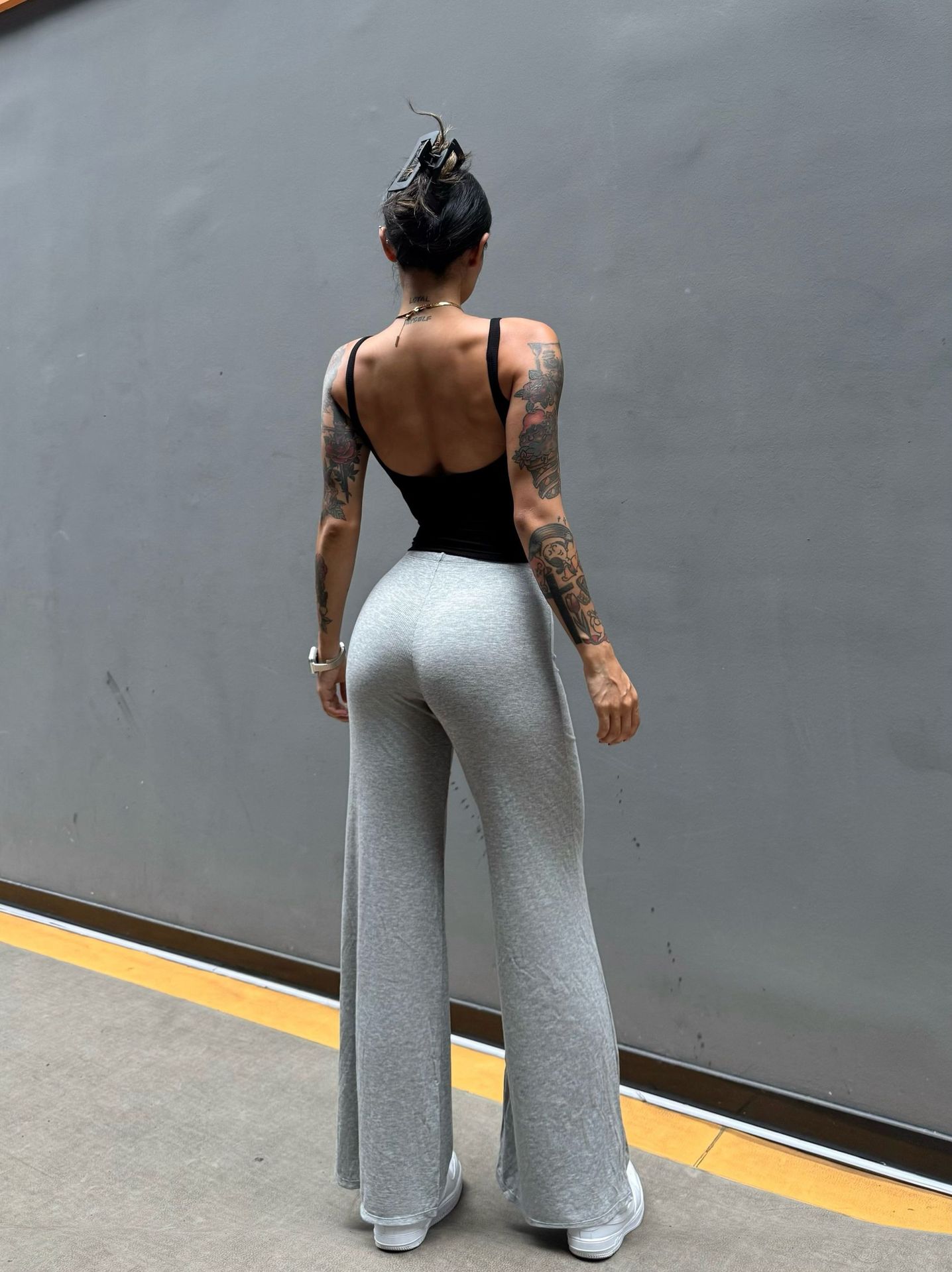 Pantalón perezoso que muestra la elasticidad de la cadera, enorme y cómodo drapeado, cintura pequeña pura, yoga recto, fitness, pantalones deportivos de ocio, mujeres