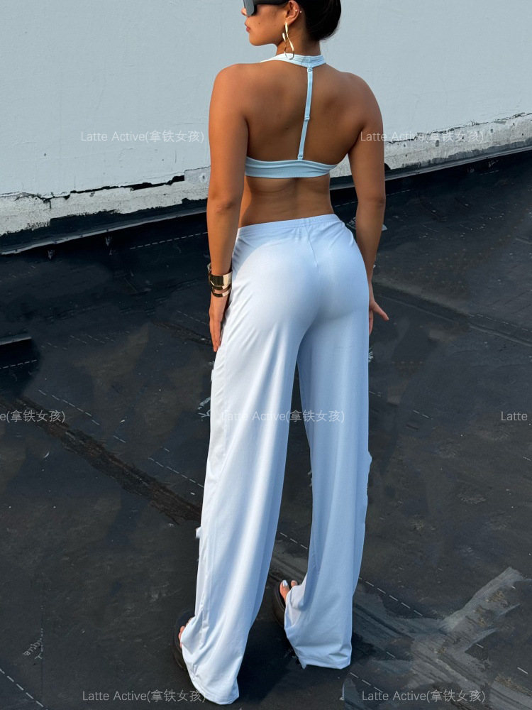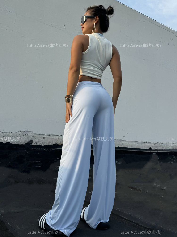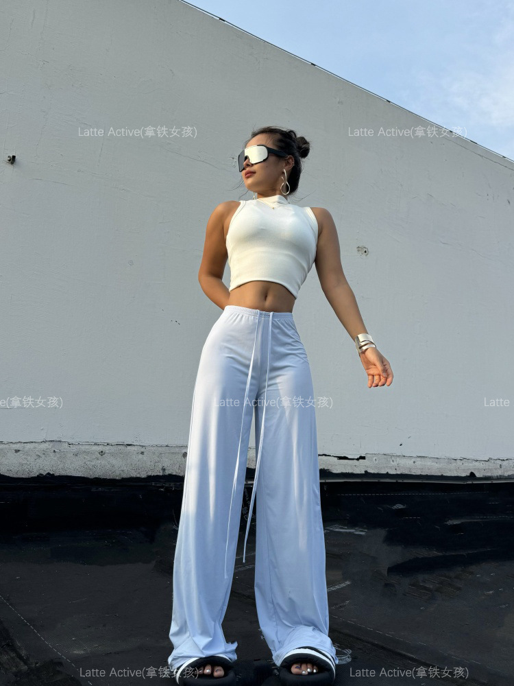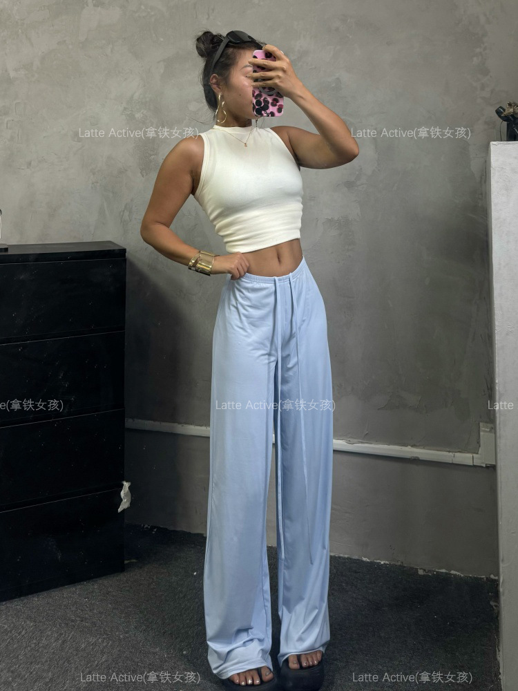 Latte girl se ve delgado, pantalones rectos, pantalones anchos deportivos sueltos para mujer, pantalones colgantes de seda de hielo frescos