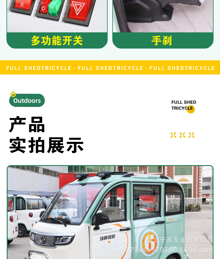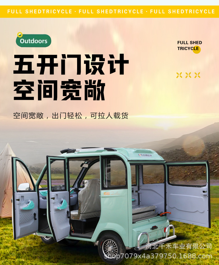 Triciclo eléctrico totalmente cerrado, caminante de edad avanzada, carro para discapacitados, caravana, cabina de conducción, nuevo estándar nacional, vehículo de batería licenciado