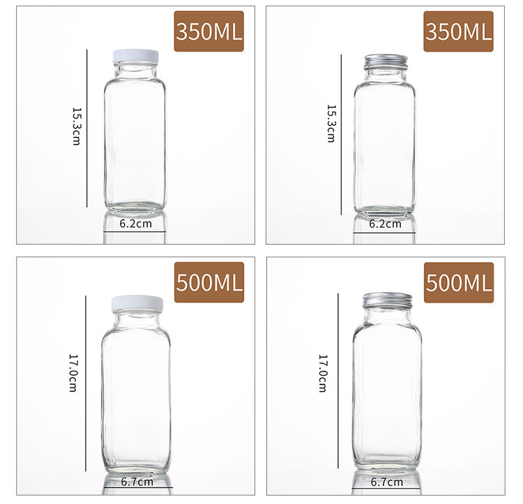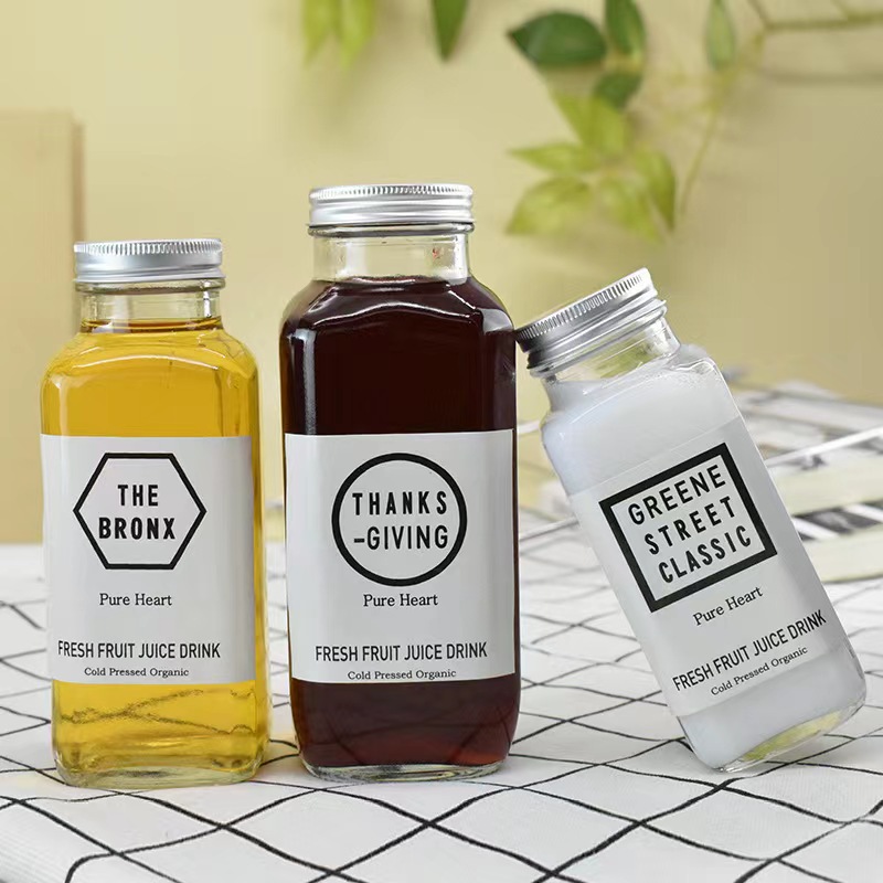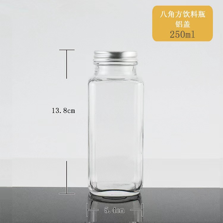 Fábrica al por mayor nueva cubierta de aluminio cuadrada para llevar botella de bebida octogonal leche té café botella sellada botella de vidrio de jugo