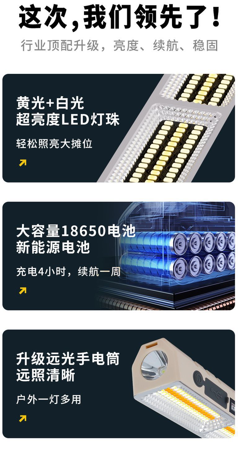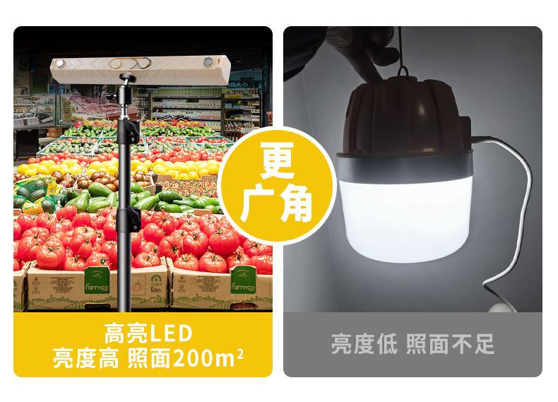Luces de carga de puestos, luces de mercado nocturno, campamentos al aire libre, luces de emergencia para cortes de energía en el hogar, teléfonos móviles recargables multifunción