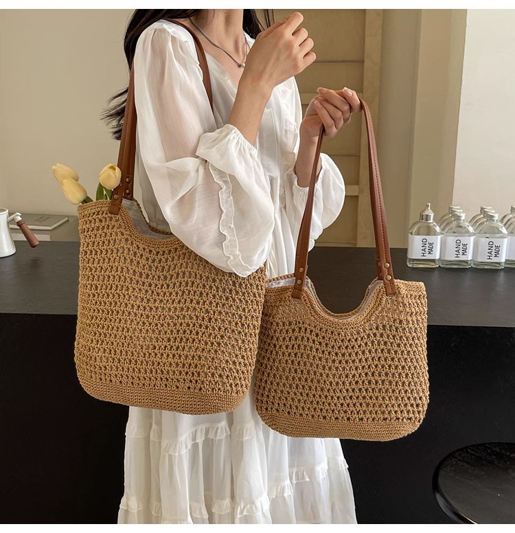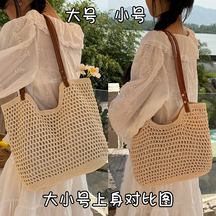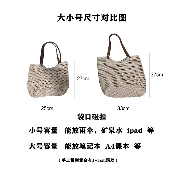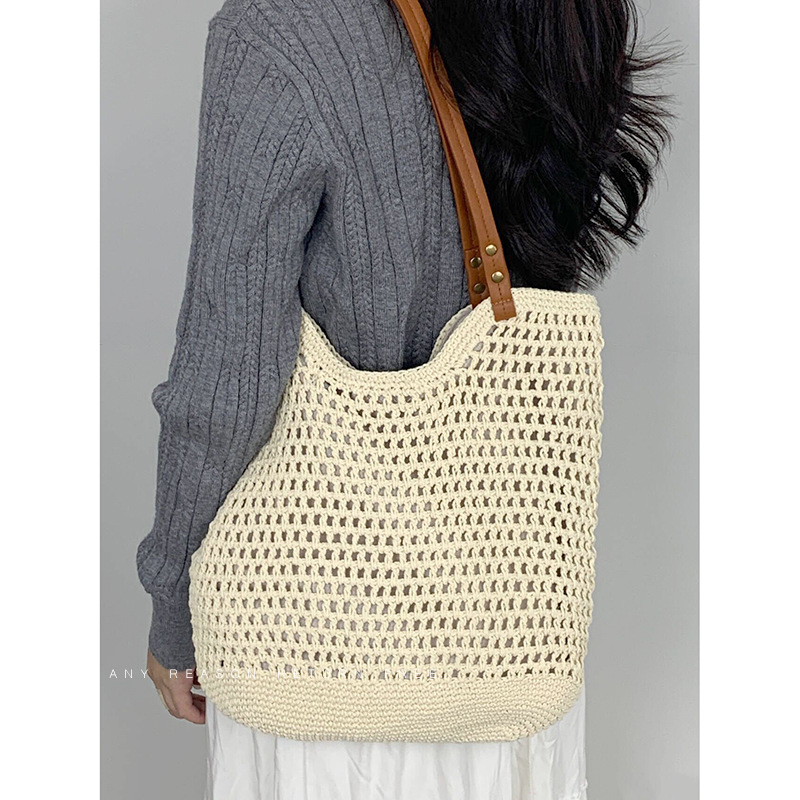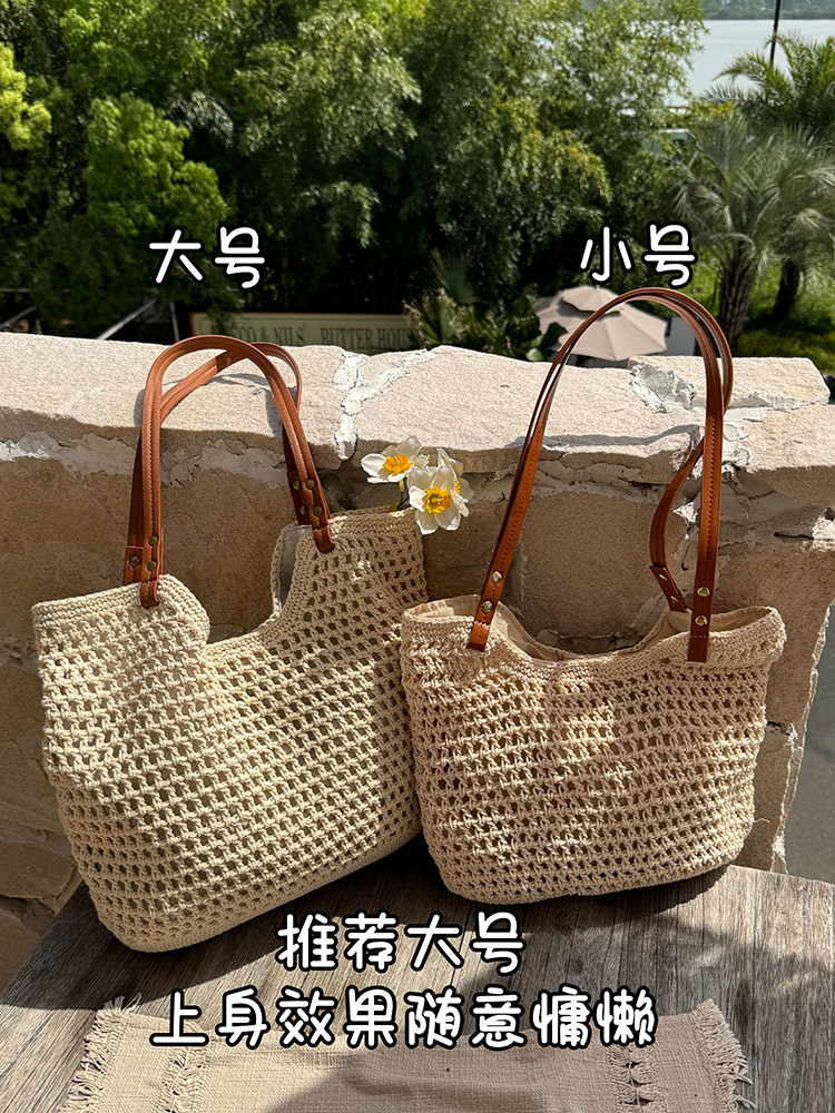 Bolso de gran capacidad tejido a mano del bosque literario, salida de primavera para mujer, bolso de paja hueco ligero, bolso de malla