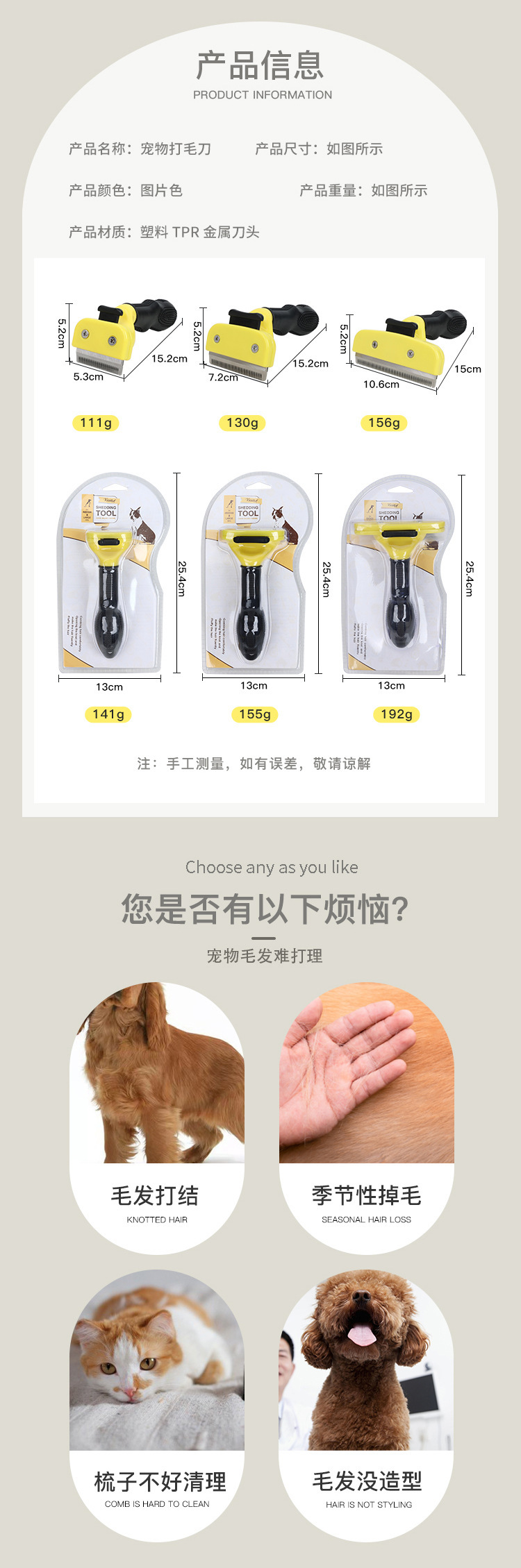Peine para mascotas, peine para gatos, perro, gato, pelo flotante, cuchillo de pelo, peine para perros, peine para mascotas, peine para depilación con una tecla