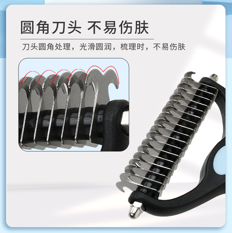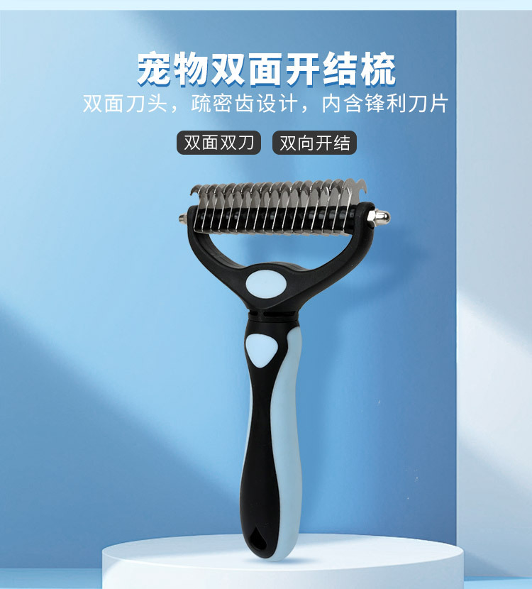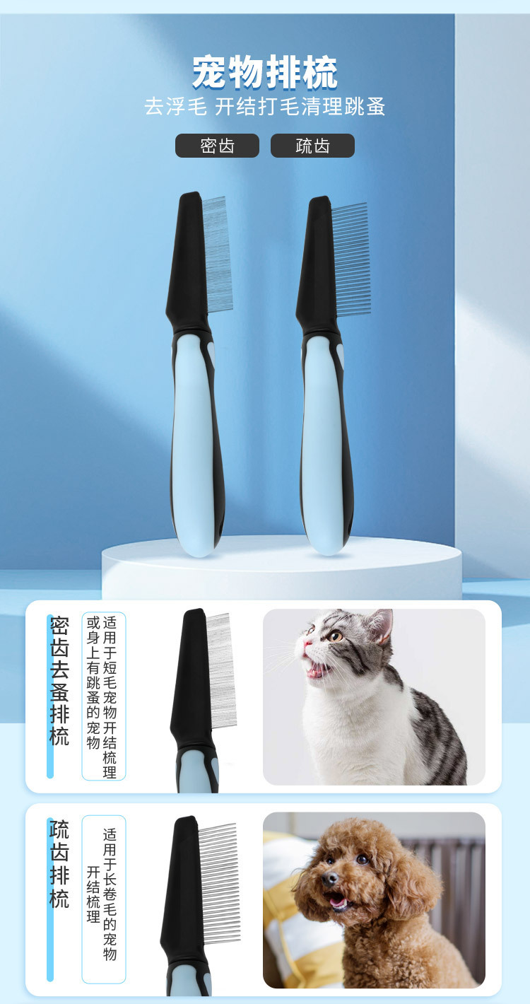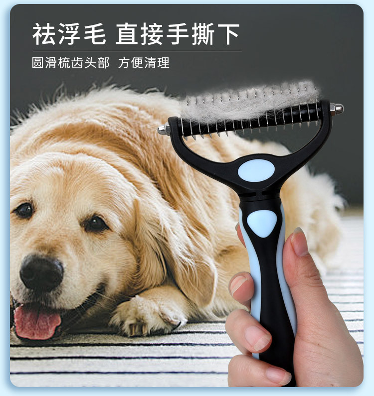 Peine desenredante de doble diente para perros y gatos, peine de aseo para perros, peine para eliminar el pelo suelto, herramienta para desenredar.
