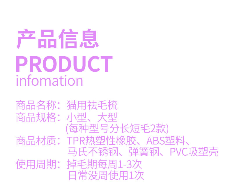| Especificaciones | Tamaño pequeño para gatos (longitud de pelo por debajo de 6 kilogramos ≤ 5cm), tamaño pequeño para gatos (longitud de pelo por debajo de 6 kilogramos ≥ 5cm), tamaño medio para gatos (longitud de pelo por debajo de 6 kilogramos ≥ 5cm), tamaño pequeño para perros (longitud de pelo por debajo de 6 kilogramos ≤ 5cm), tamaño medio para perros (longitud de pelo por debajo de 6 kilogramos ≥ 5cm), tamaño medio para perros (longitud de pelo por debajo de 6 kilogramos ≤ 5cm), tamaño medio para perros (longitud de pelo por debajo de 6 - 14 kilogramos ≥ 5cm), tamaño grande para perros (longitud de pelo por debajo de 14 - 36 kilogramos ≤ 5cm), tamaño grande para perros longitud del pelo ≥ 5cm), tamaño súper grande para perros (longitud del pelo superior a 36 kilogramos ≤ 5cm), tamaño súper grande para perros (longitud del pelo superior a 36 kilogramos ≥ 5c) |
