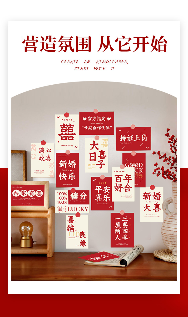Conjunto de diseño de postal con palabra feliz para sala de bodas, tarjeta de boda, nueva casa, sala de estar, dormitorio, decoración de pared de fondo, nido de amor