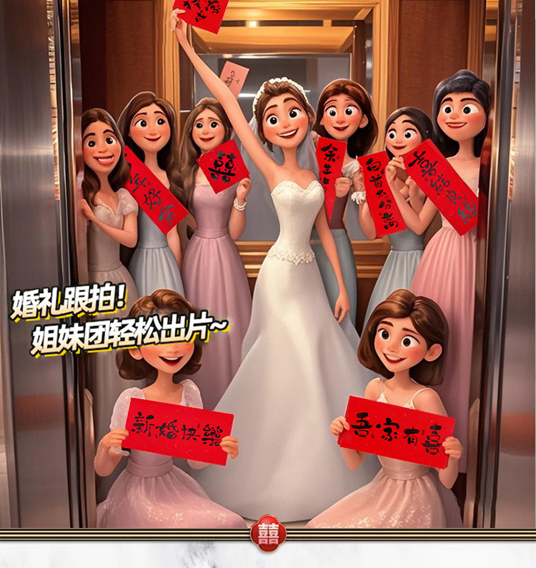Ropa de bodas para la mañana, props de fotografía, novia de la mañana, damas de honor, grupo de hermanas de bodas, foto de recepción, posada, foto de palabras de boda, pequeño dúplex
