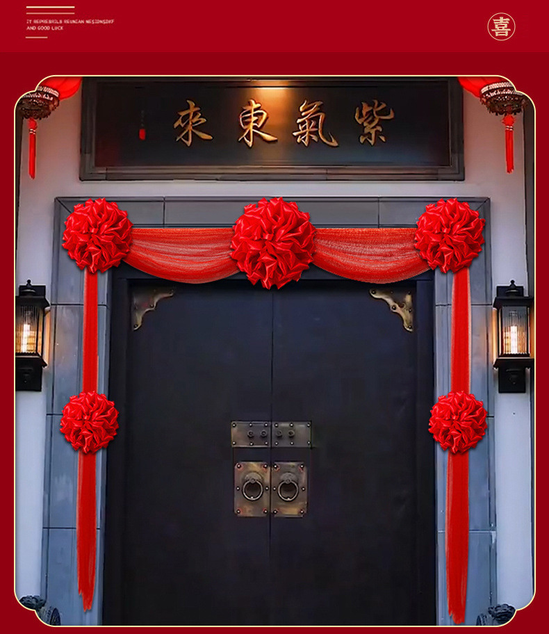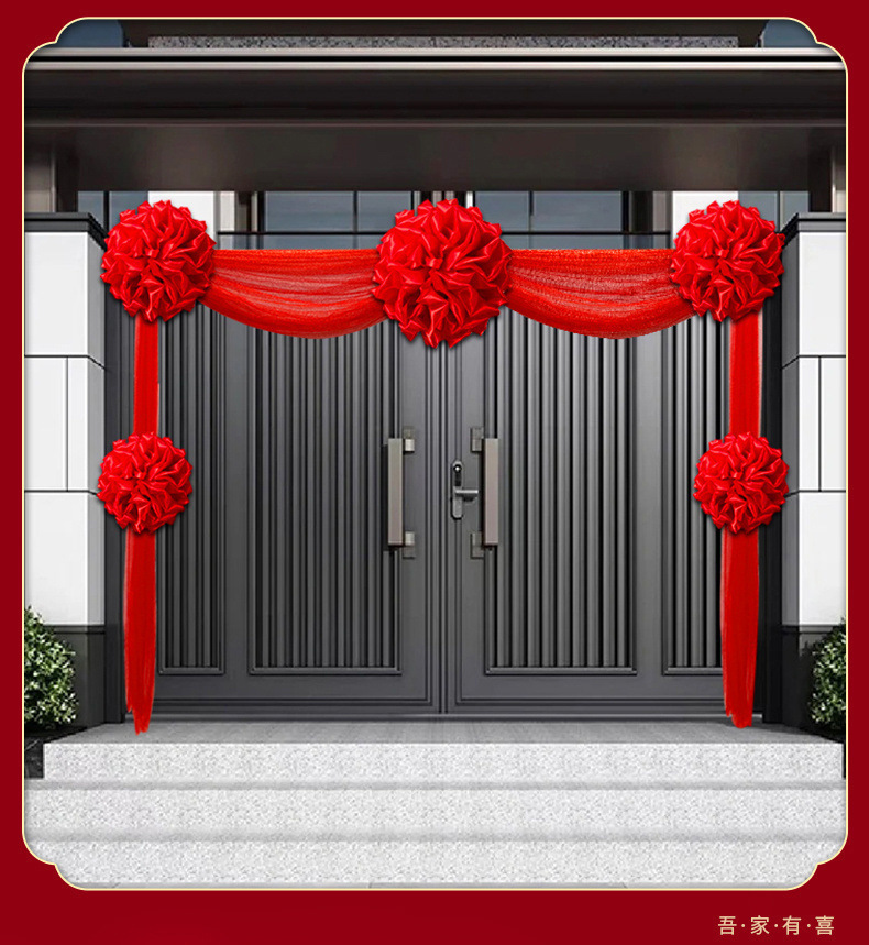 Cortina de tela decoración de la puerta de la boda gran bola de cártamo puerta de la unidad de la puerta de la casa nueva puerta de la casa de bodas flor de seda venta directa