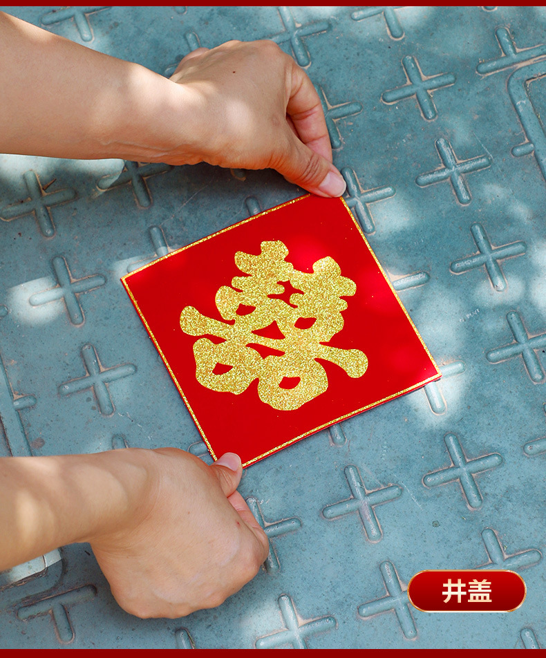Papel rojo flocado no tejido con sello de cubierta de pozo con pegatina autoadhesiva guiada por el camino