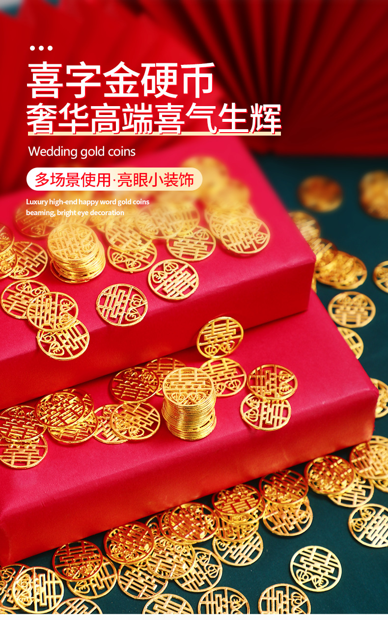 Creativo Nueva Casa decoración de la boda Xi carácter moneda Moneda de Oro moneda de cinco centavos Xi carácter pegatina cama de boda diseño de la cama