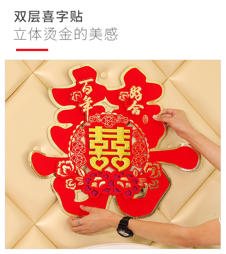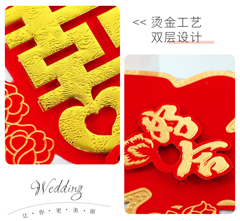 Casamiento de palabras felices de bodas de la ventana de flores de la puerta del diseño de la boda espesa doble estereoscópica pegatinas de pared de poliestireno