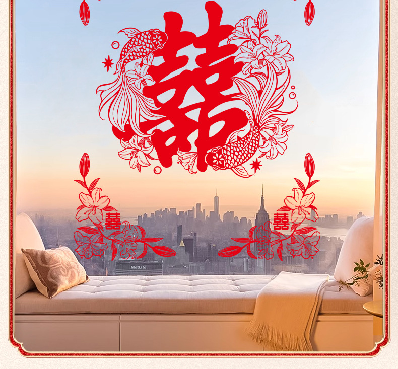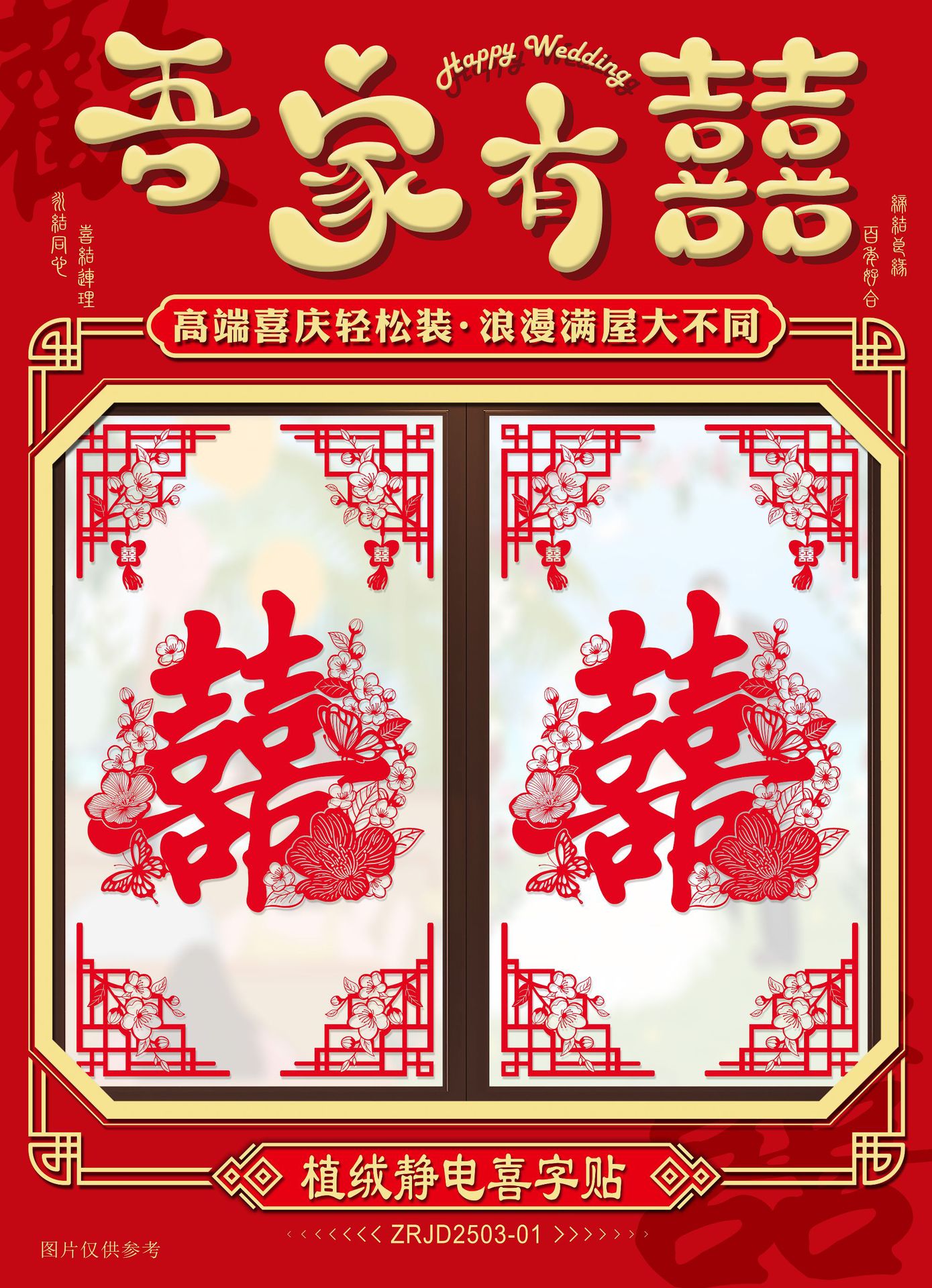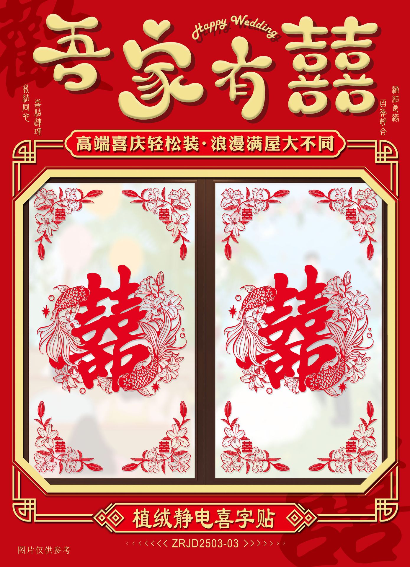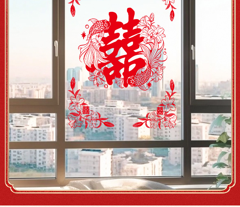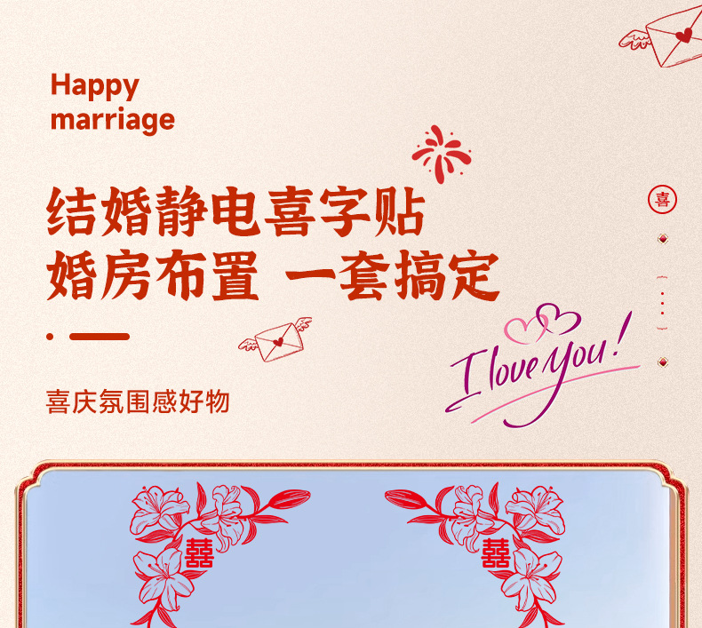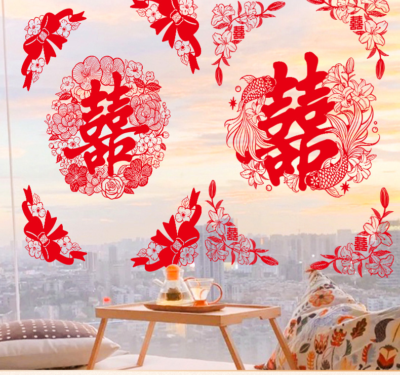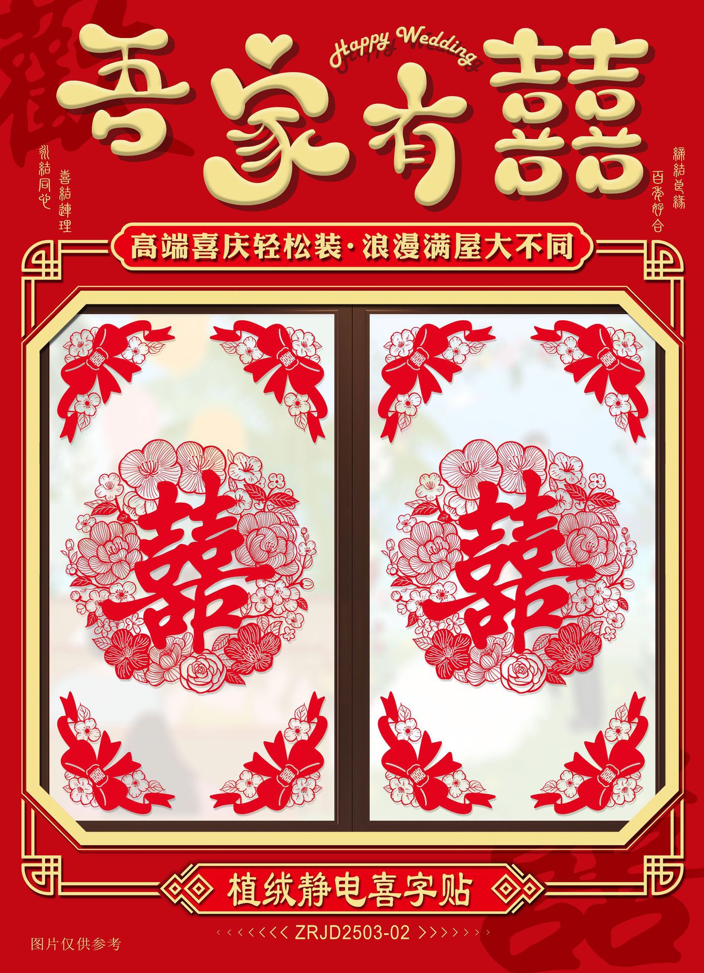 Flocado de bodas palabra feliz electrostática 2025 diseño de la sala de bodas pegatinas de puertas y ventanas de vidrio sin costuras