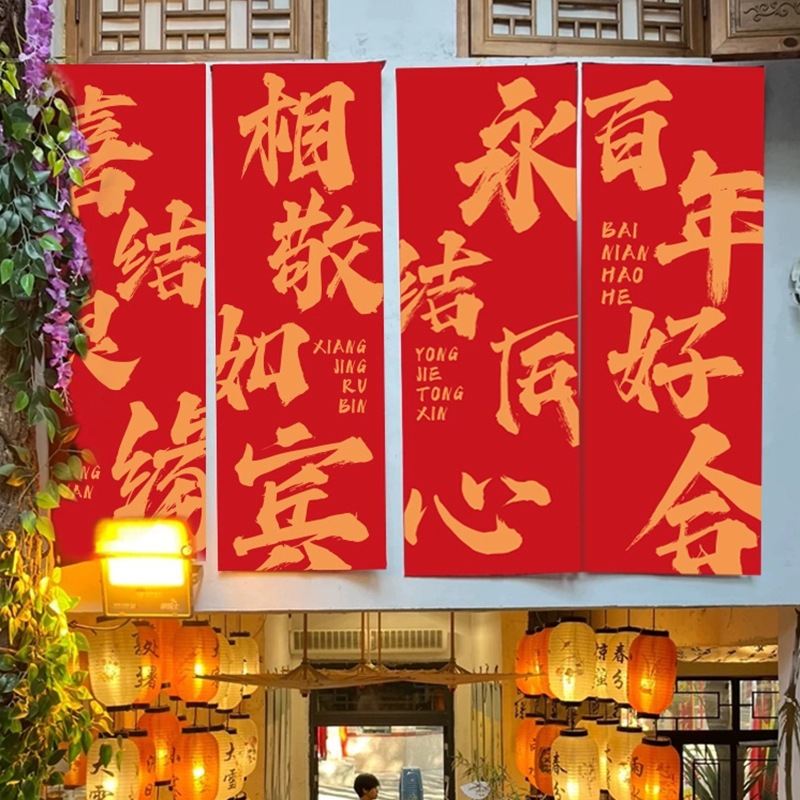 Casamiento nuevo diseño de casa caligrafía pancarta boda casa de boda decoración de tela colgante túnica de la mañana foto de fondo compromiso fuera de la habitación larga alegría