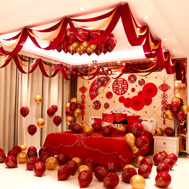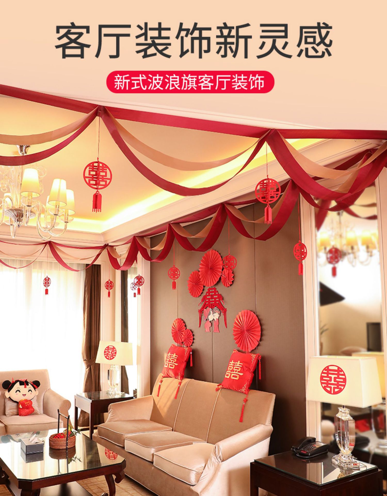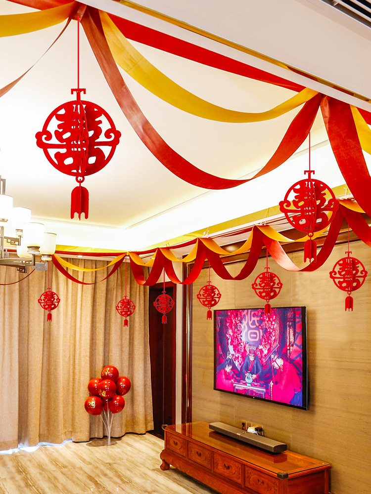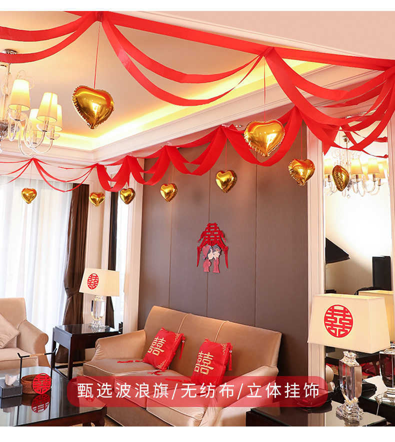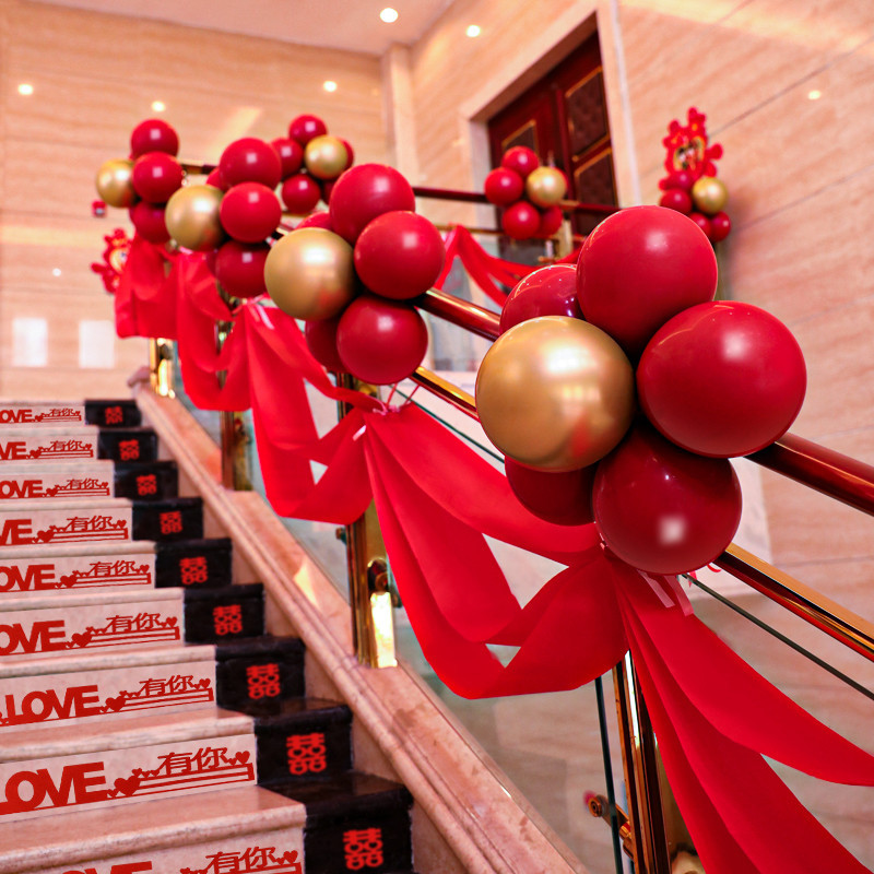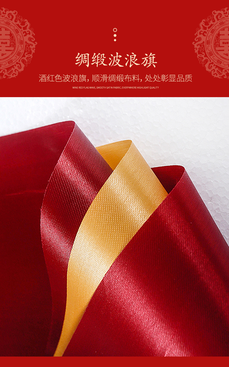 Decoración de escaleras de boda tres capas de vino rojo ondulación bandera de Año Nuevo tiendas de decoración de bandera ondulada del centro comercial