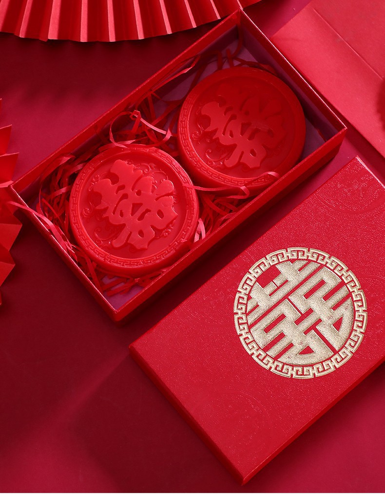 Jabon de boda, jabón de aceite esencial hecho a mano, doble jabón de boda, jabón rojo, regalo de regalo, caja de regalo, jabón de regalo de boda