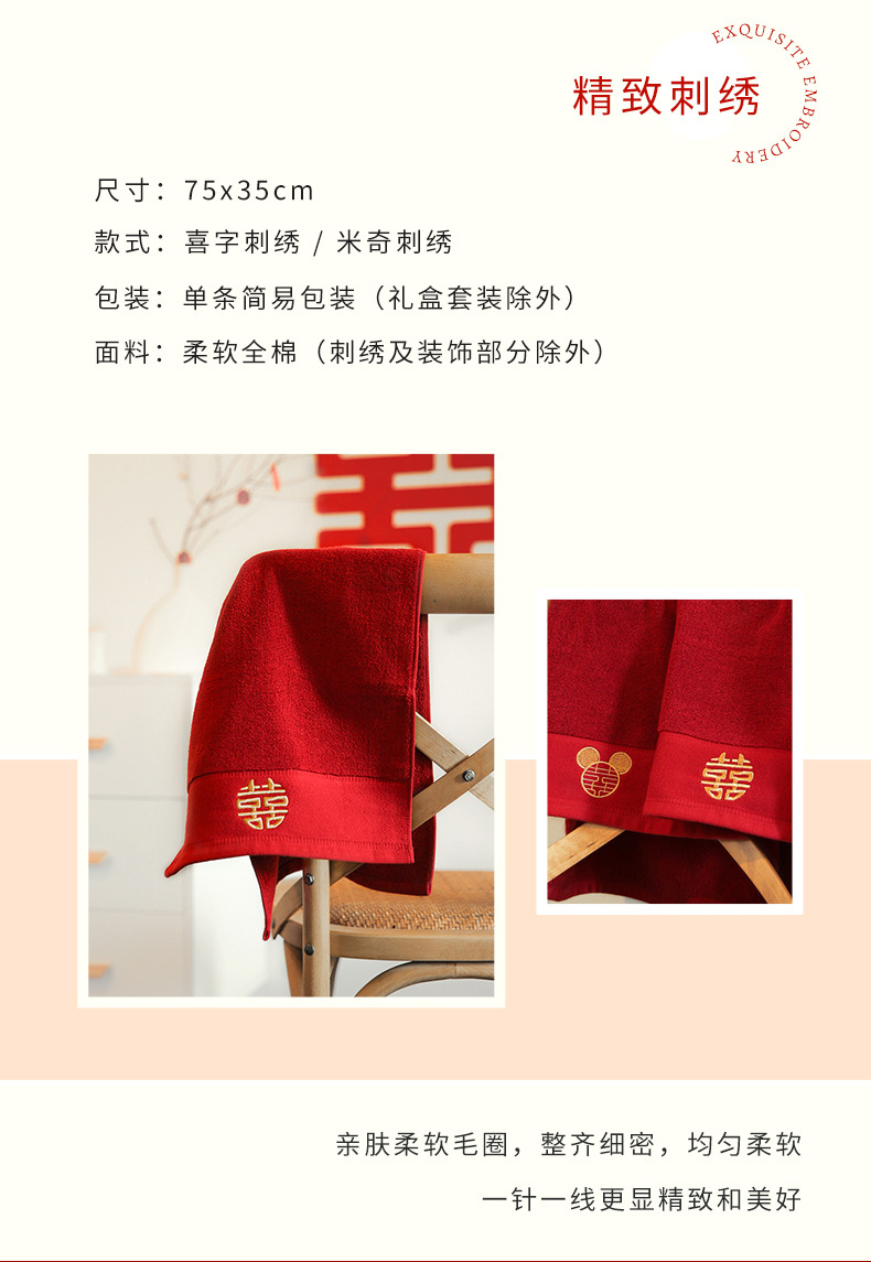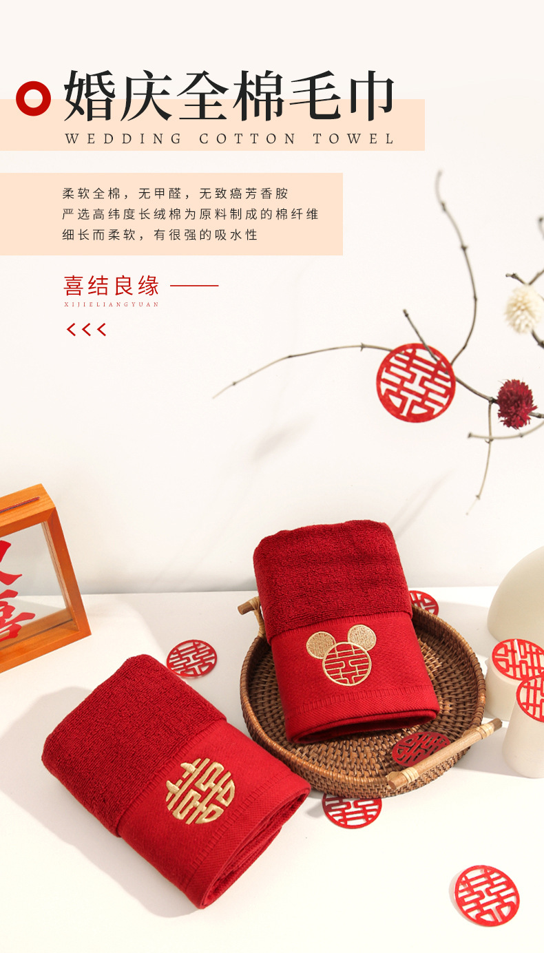 Suministros de boda, toallas para parejas, toallas para parejas de boda, un par de cajas de regalo, novia de boda roja, regalos de mano