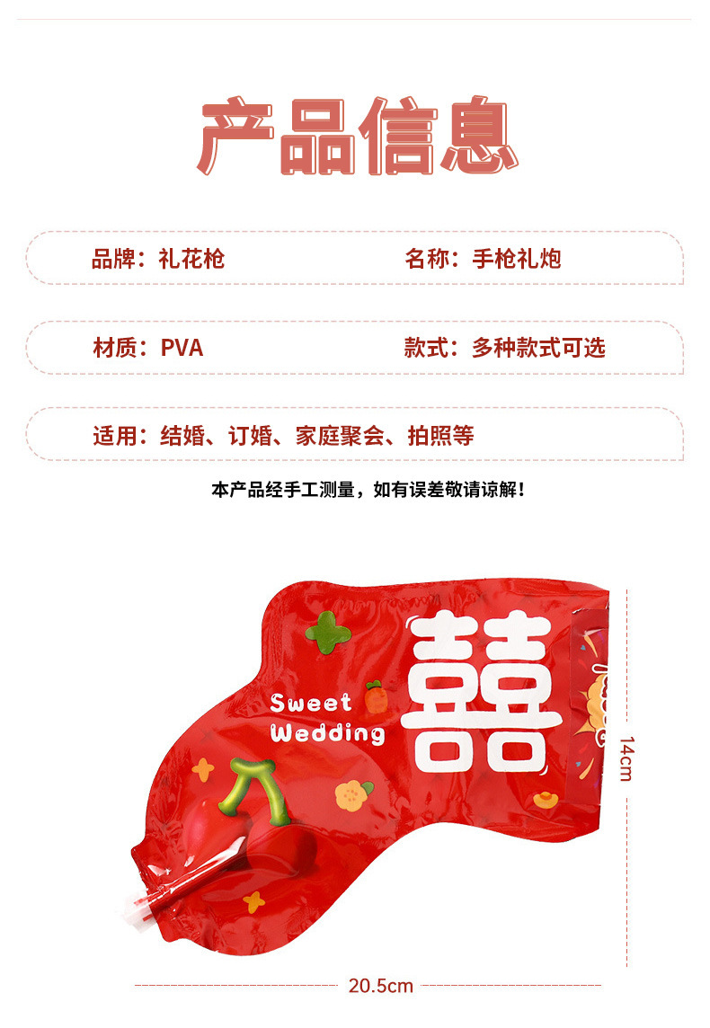 Boda de regalo de regalo de mano pistola de regalo de boda compromiso de familia foto props spraying de arroz suministros de boda