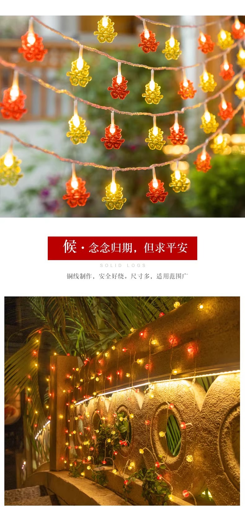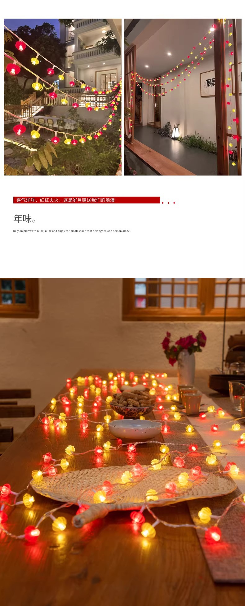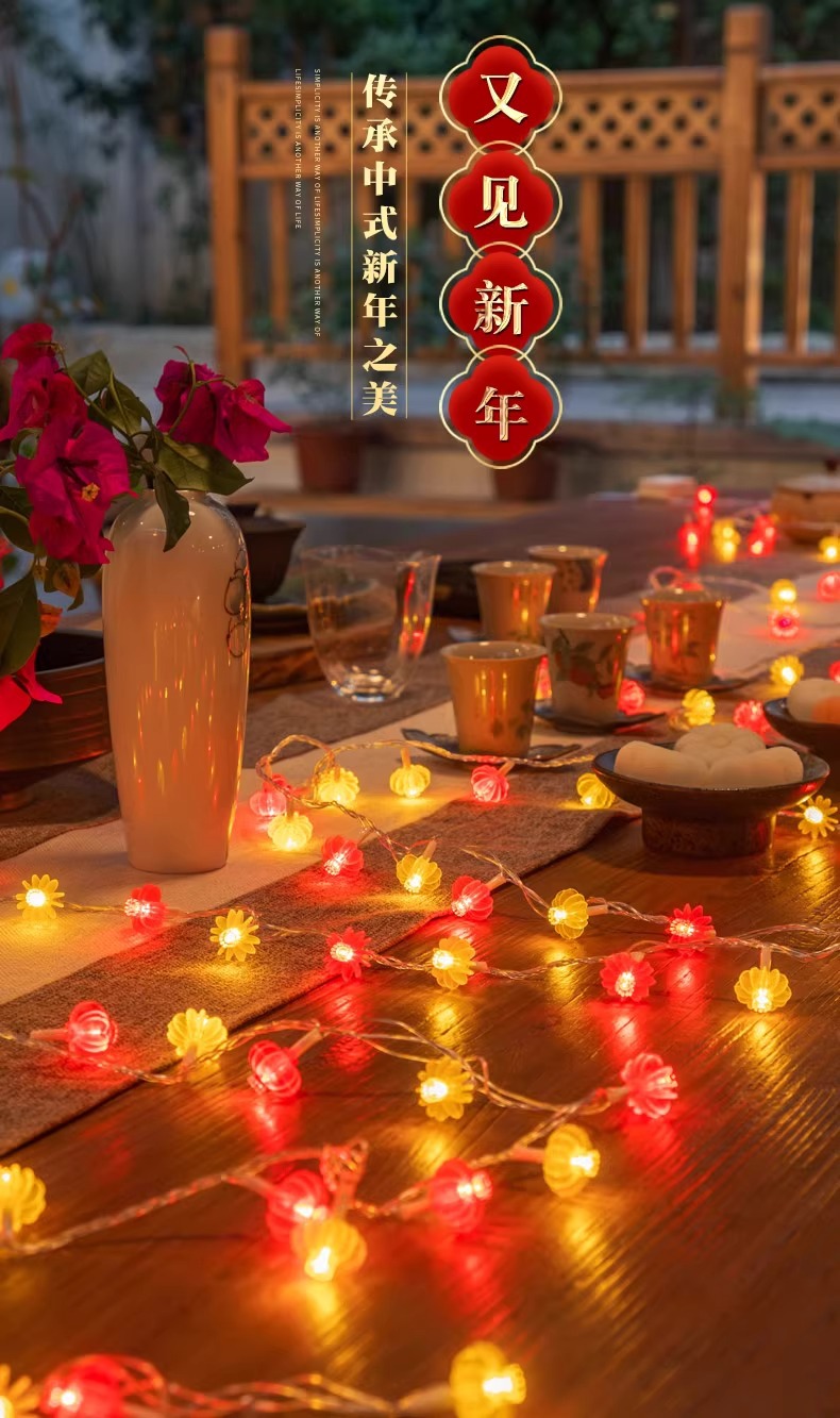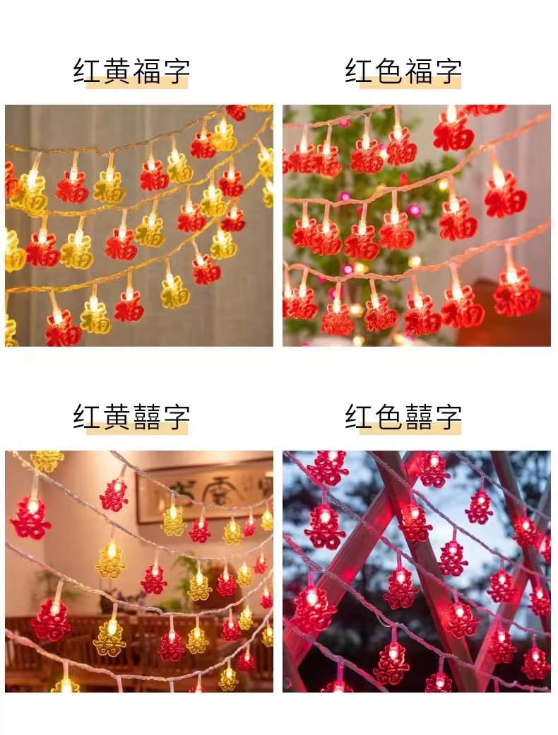 Boda festiva linterna roja casa atmósfera luces intermitentes luces de cadena boda festivo vacaciones decoración luces coloridas