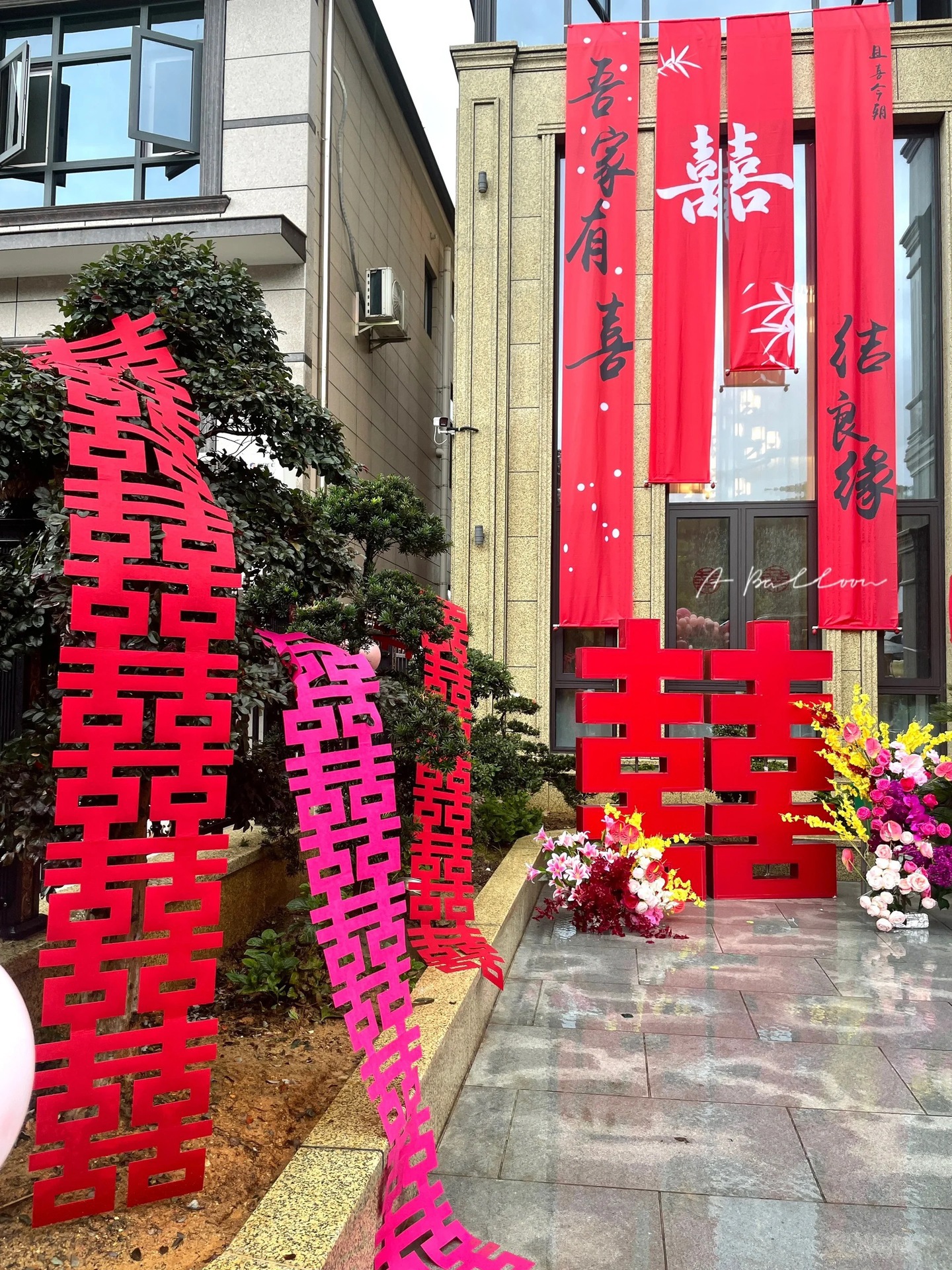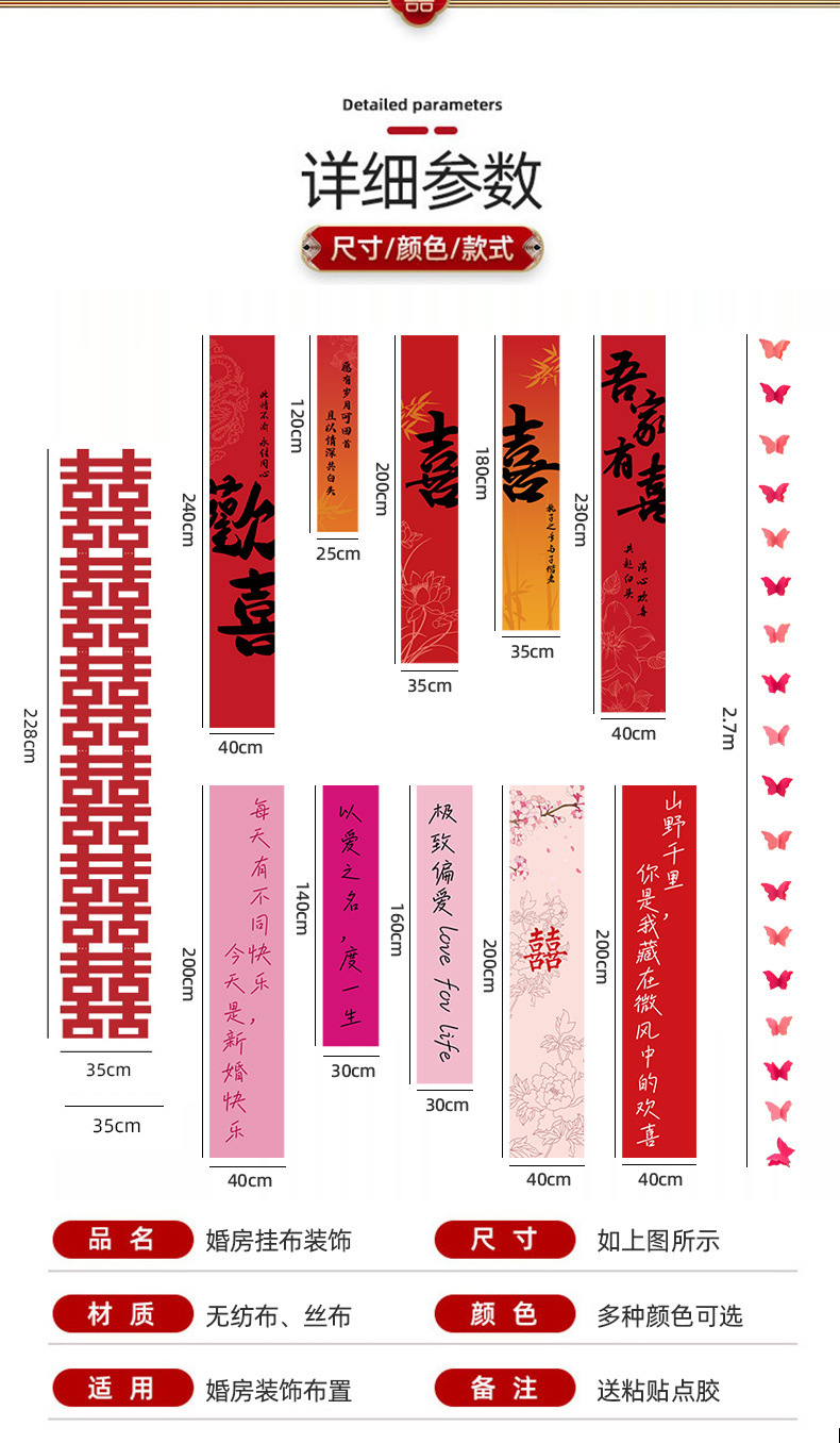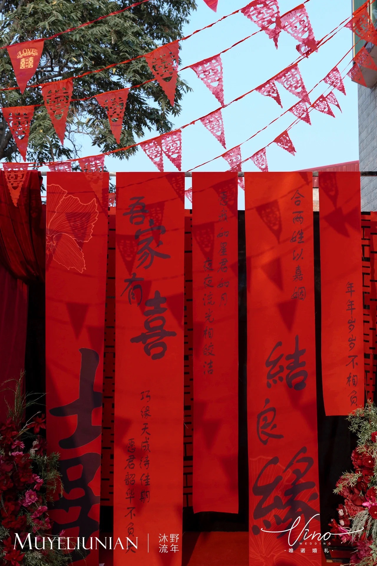 Casa de bodas estilo chino tela colgante jardín rural decoración de boda banquete de compromiso fotos de alto nivel pancarta de tela de fondo rojo