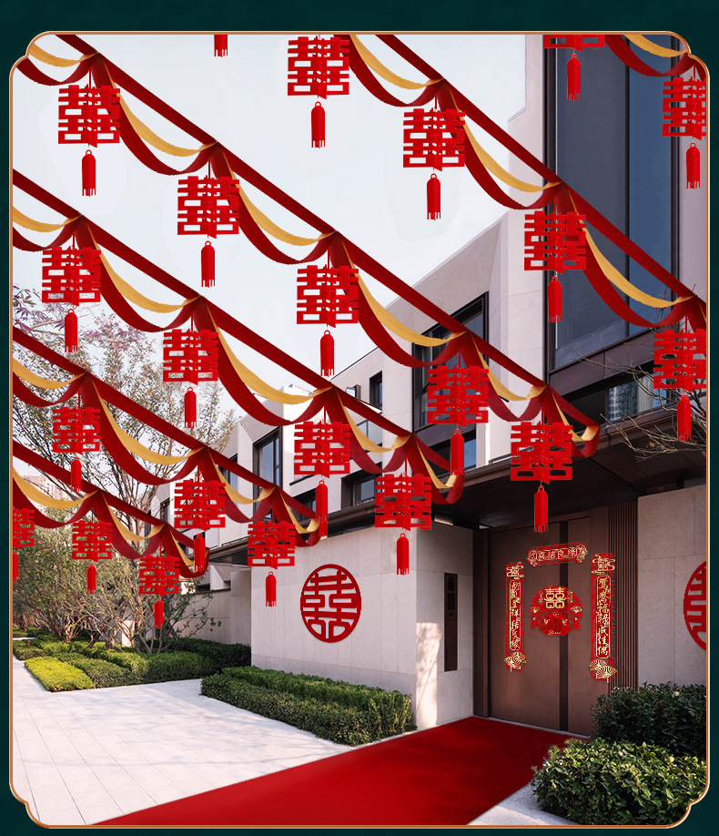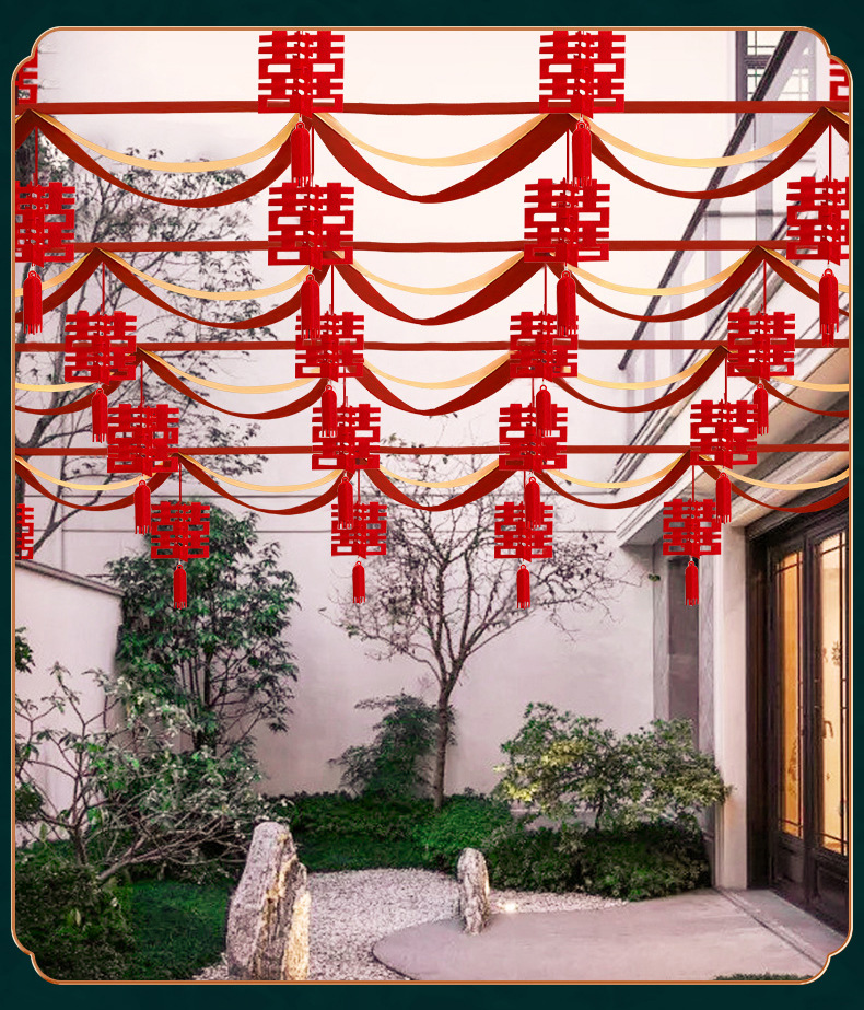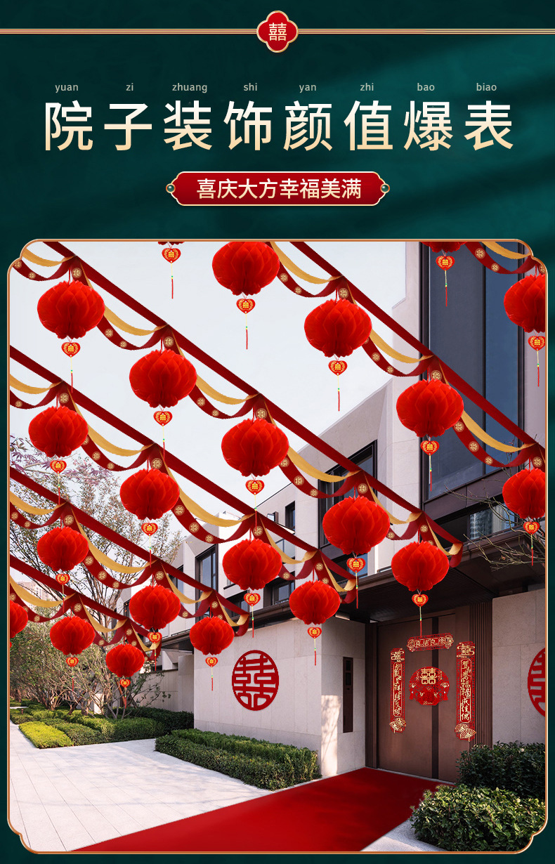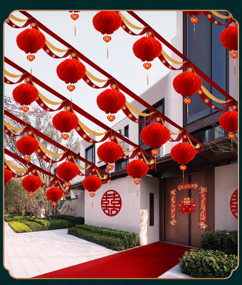 Suministros de boda al por mayor boda onda bandera linterna decoración al aire libre rural patio puerta onda guirnalda