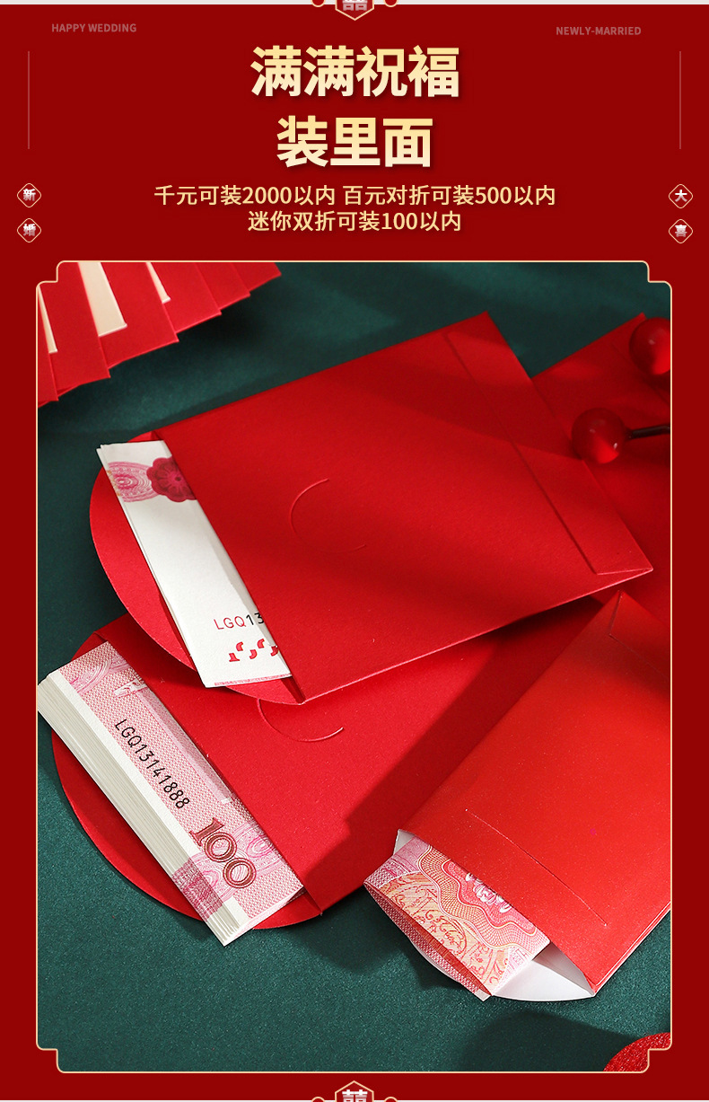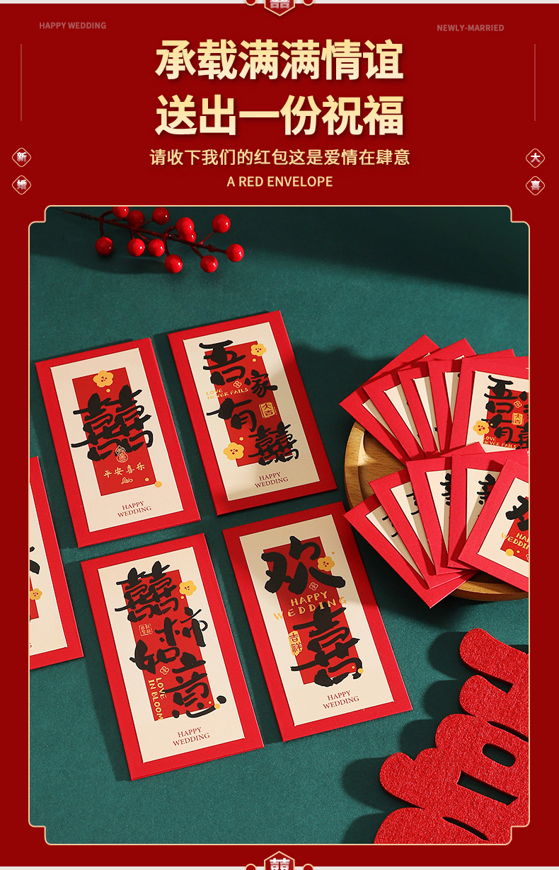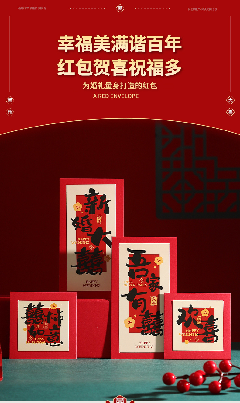 Sobre rojo especial para bodas 2025 nueva palabra feliz para recibir a los familiares y bloquear la puerta bolsa de sobre rojo boda compromiso de boda